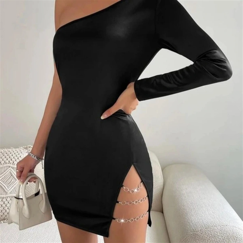 Bayan Asimetrik Halkalı Mini Elbise