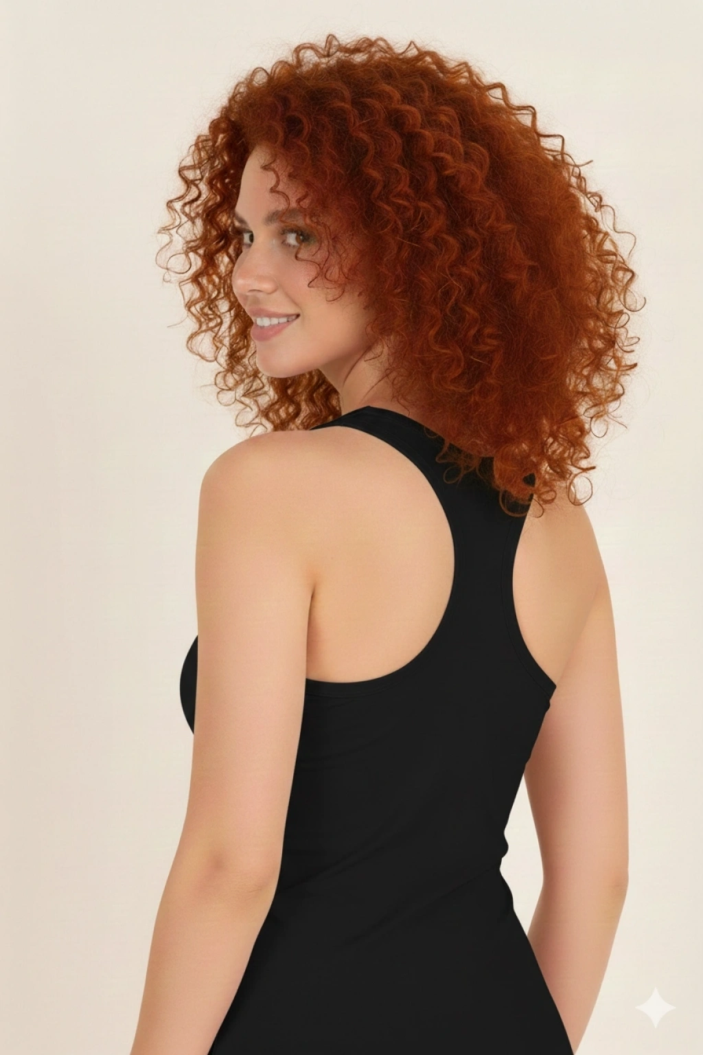 Likralı Pamuklu İp Askılı Siyah Atlet