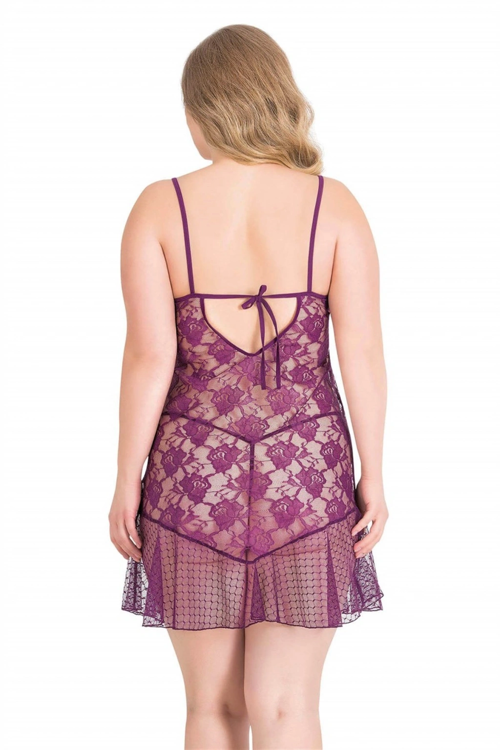 Büyük Beden Mor Kısa Tül Gecelik 3031