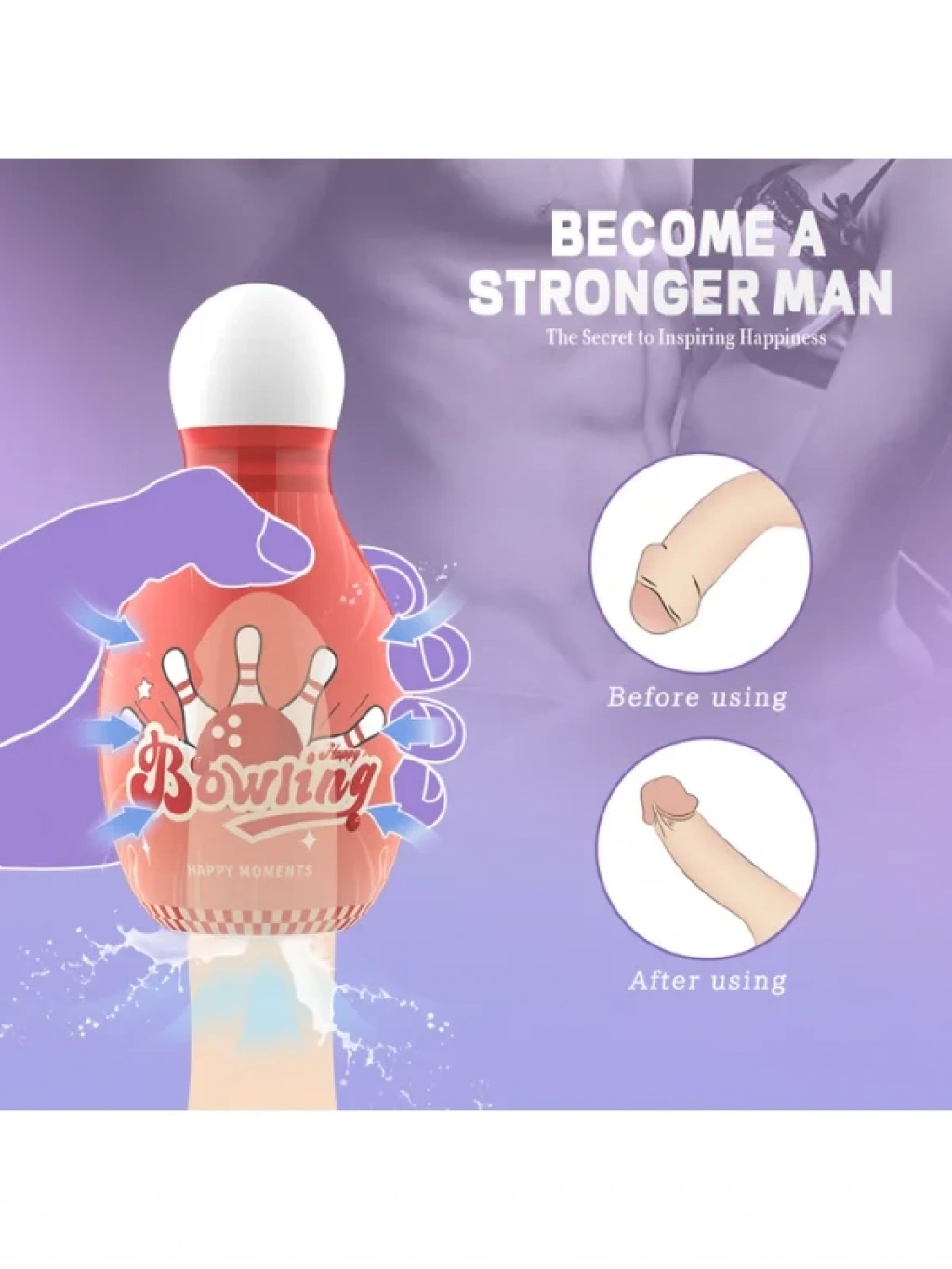 Ağırlık: 58,7 grBoyut: 106,1 x 51,5 mmÜrün Açıklaması:Keyifli Bowlingler, eğlenceli ve sıradışı tasarımıyla klasik erkek mastürbatörlerine yenilik katıyor. Bowling topunu andıran özel formu sayesinde elde rahatça tutulur ve kullanımı kolaydır. İç yapısı, erkeklere özel masaj ve uyarım sunarak yoğun bir zevk deneyimi sağlar. Kompakt boyutu sayesinde taşıması kolaydır; evde veya seyahatte rahatlıkla kullanılabilir.58,7 gramlık hafif tasarımı ve ergonomik yapısıyla hem yeni başlayanlar hem de deneyimli kullanıcılar için uygundur. Mastürbasyon deneyimini eğlenceli hale getirirken, aynı zamanda güçlü bir rahatlama sağlar.Fonksiyon: Erkekler için masaj ve mastürbasyon.Tasarım Özelliği: Bowling Labut şeklinde yaratıcı dış görünüm.