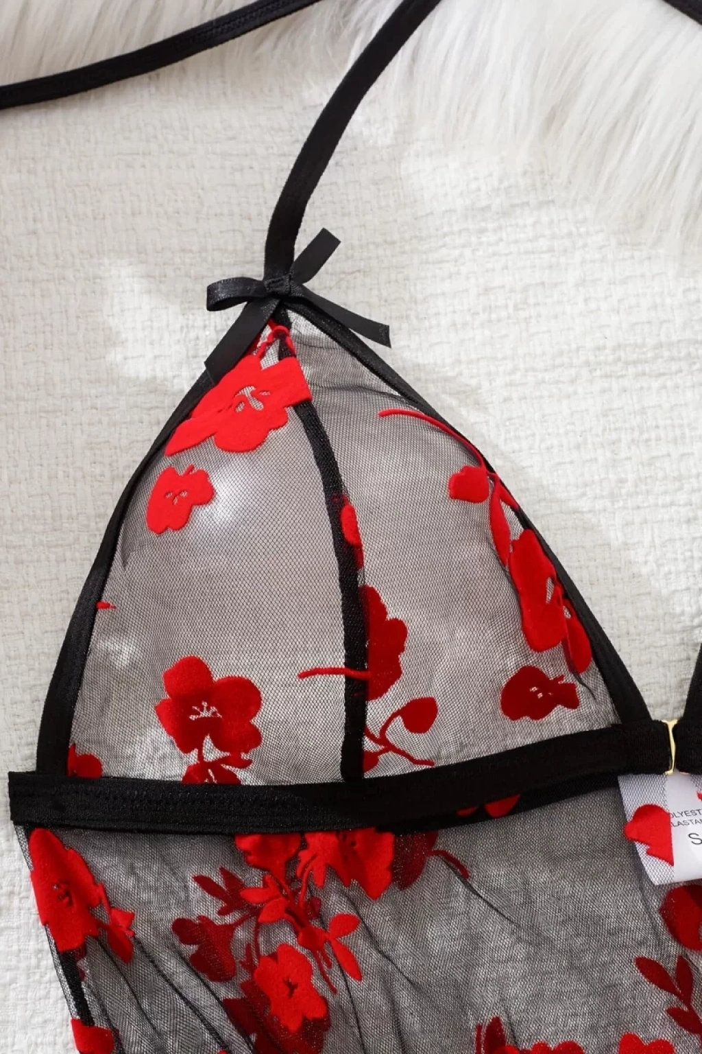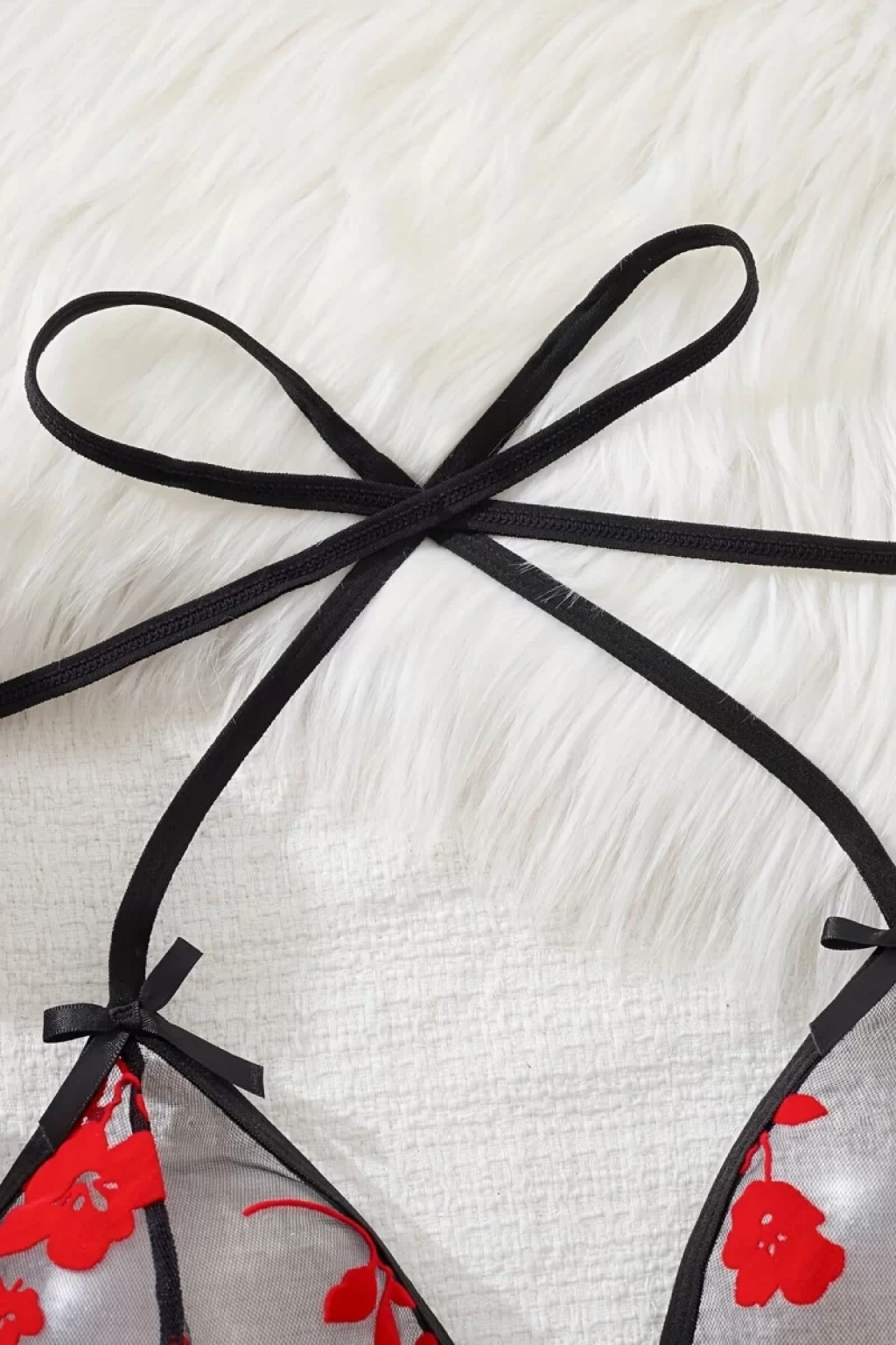 Kırmızı Göğüs İp Detaylı Dantel İşlemeli Tül Gecelik