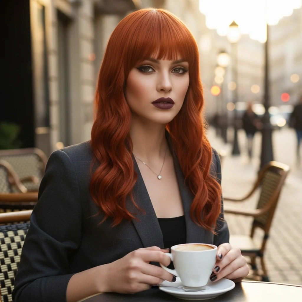 Koyu Bakır Su Dalgalı Tül Peruk