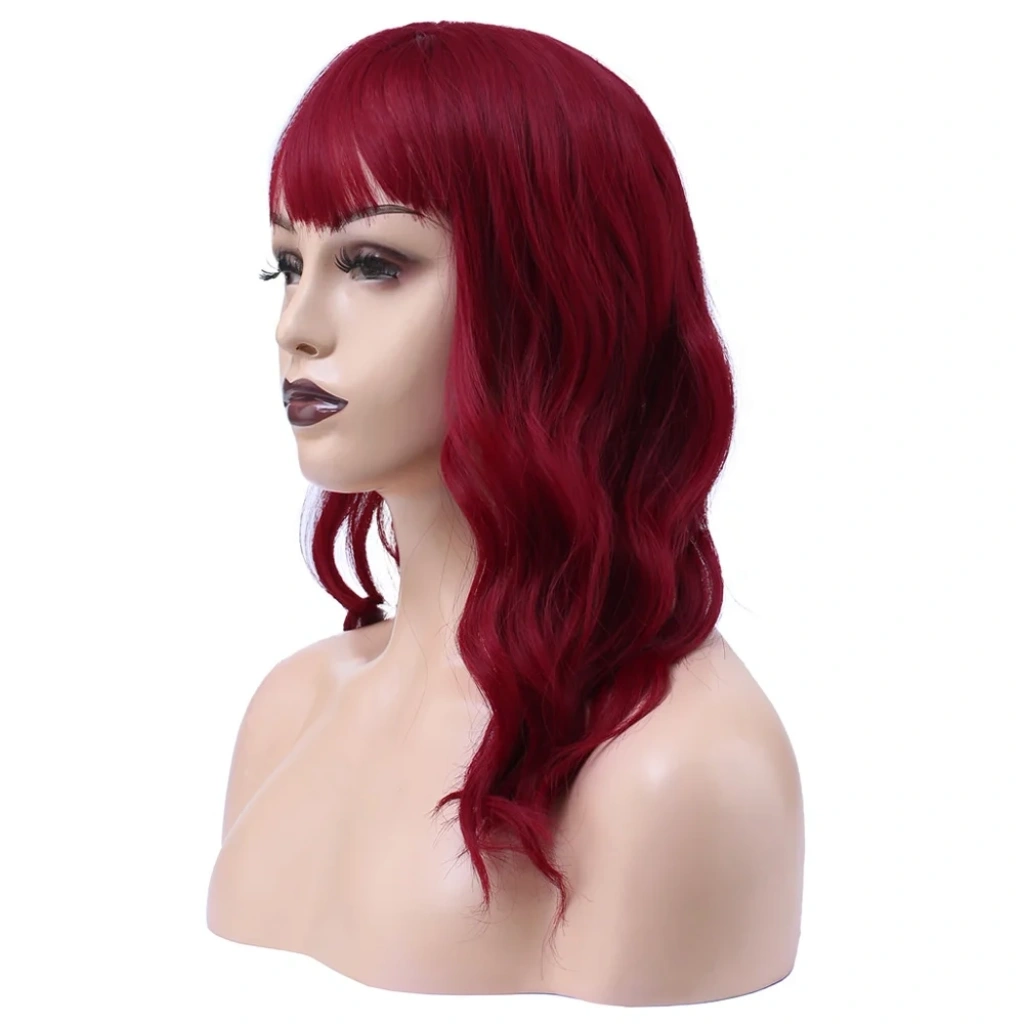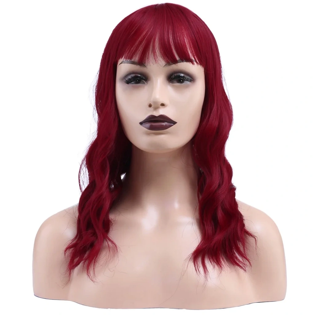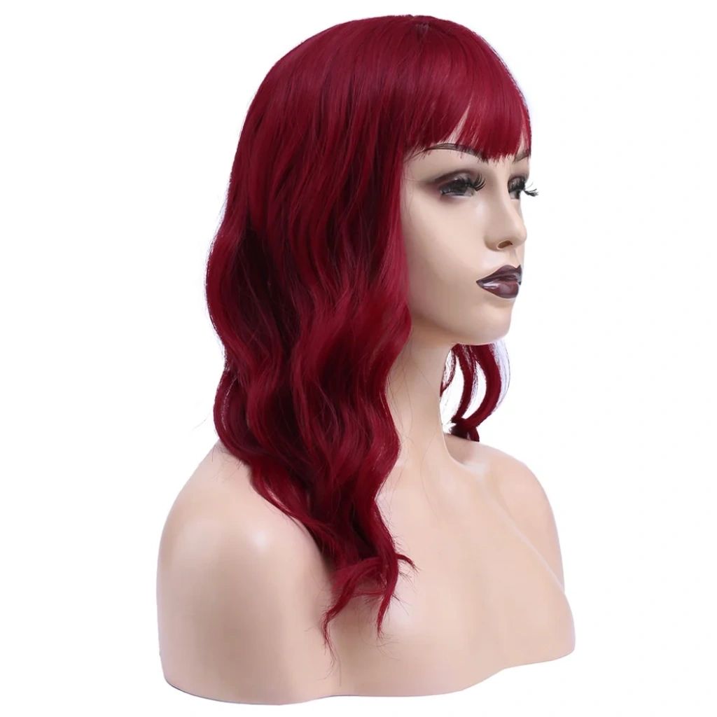 Dalgalı Kısa Perçemli Fiber Sentetik Peruk - Kızıl