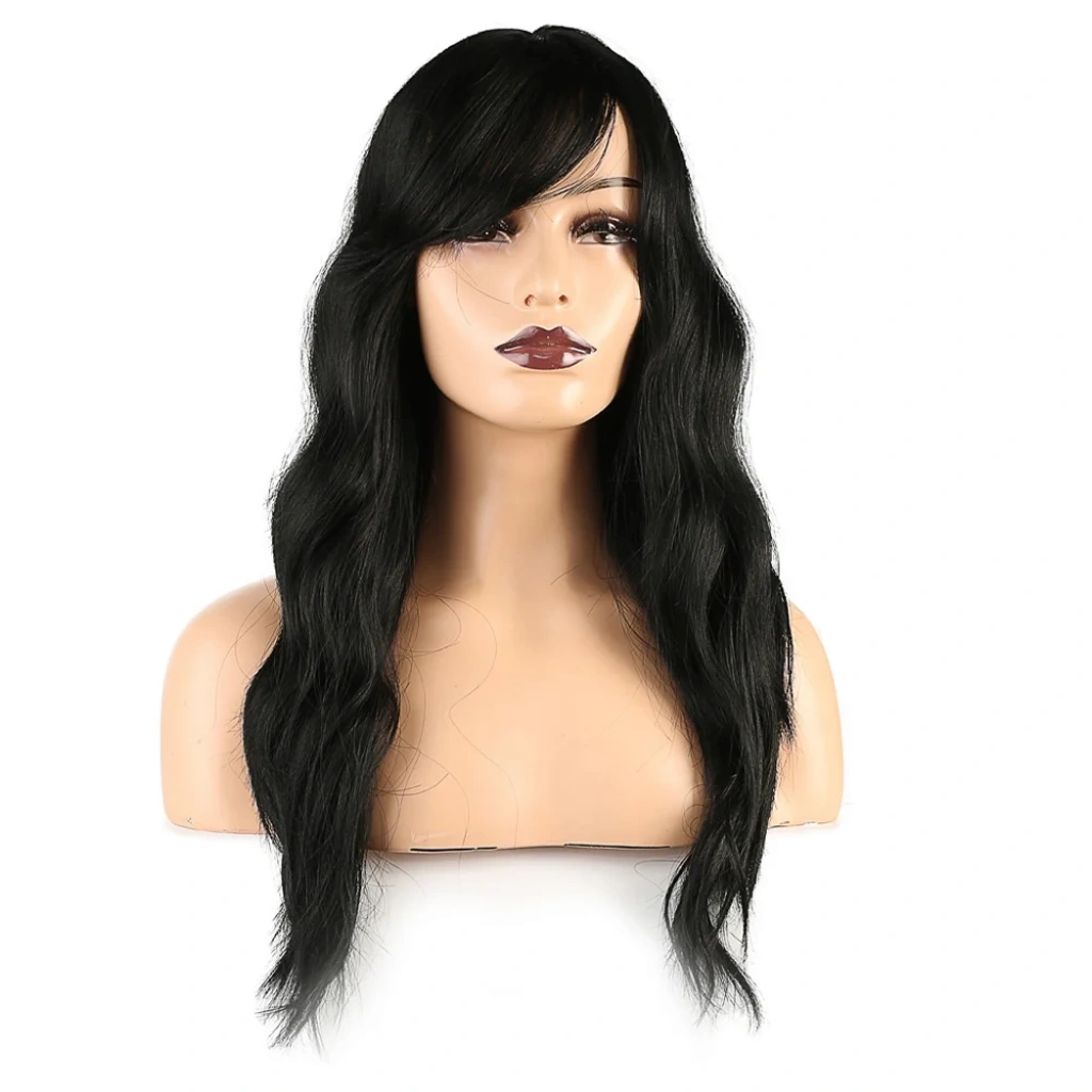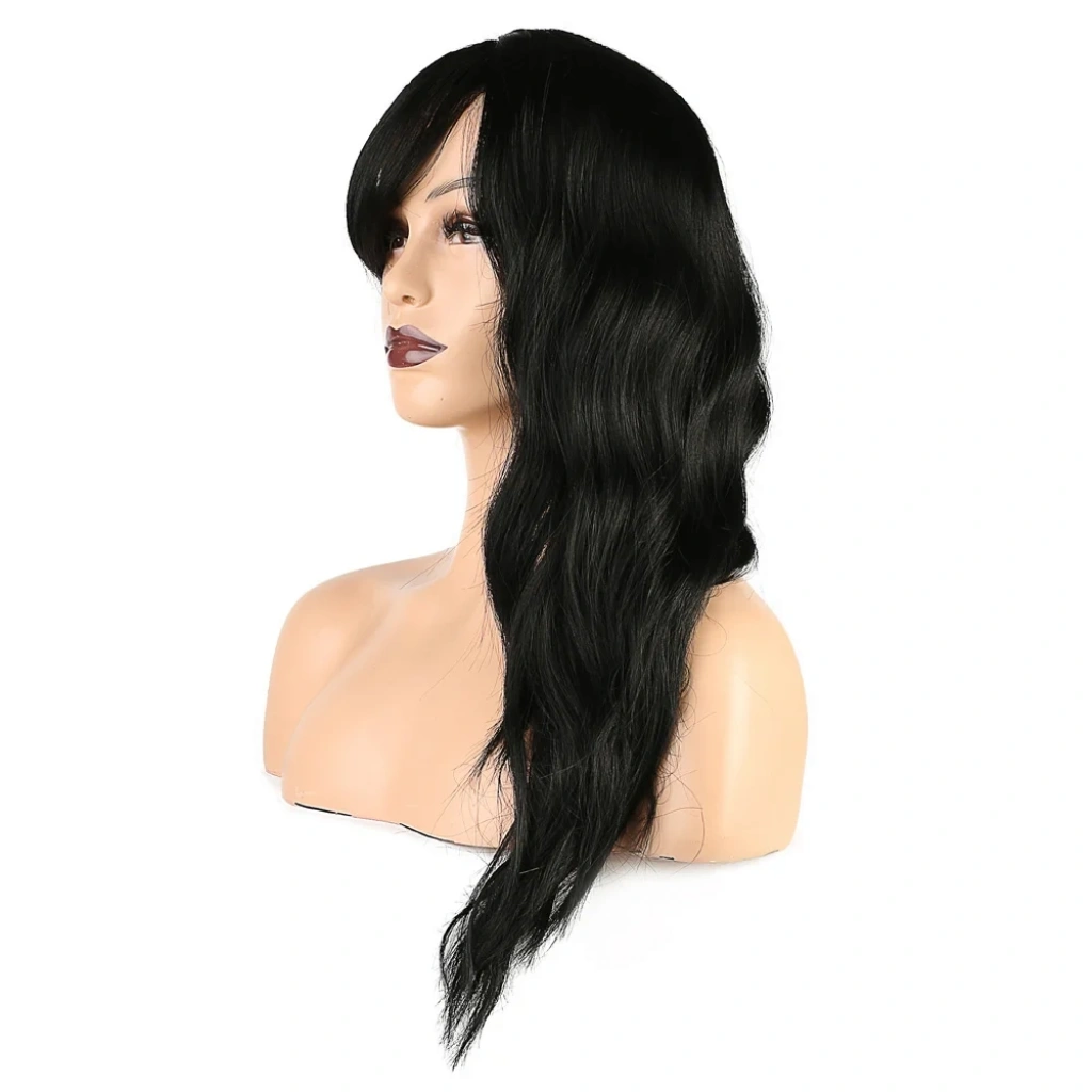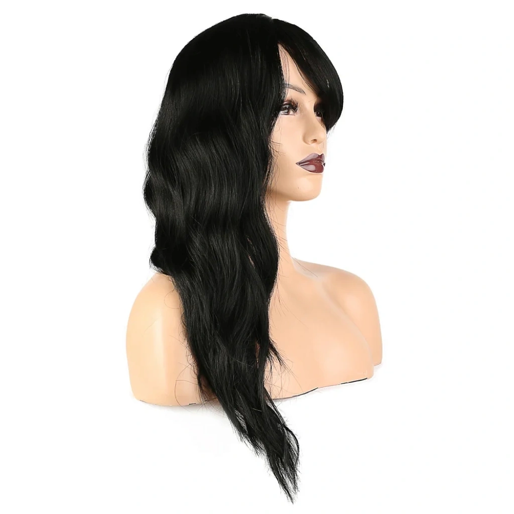 Dalgalı Perçemli Fiber Sentetik Orta Boy Peruk - Siyah