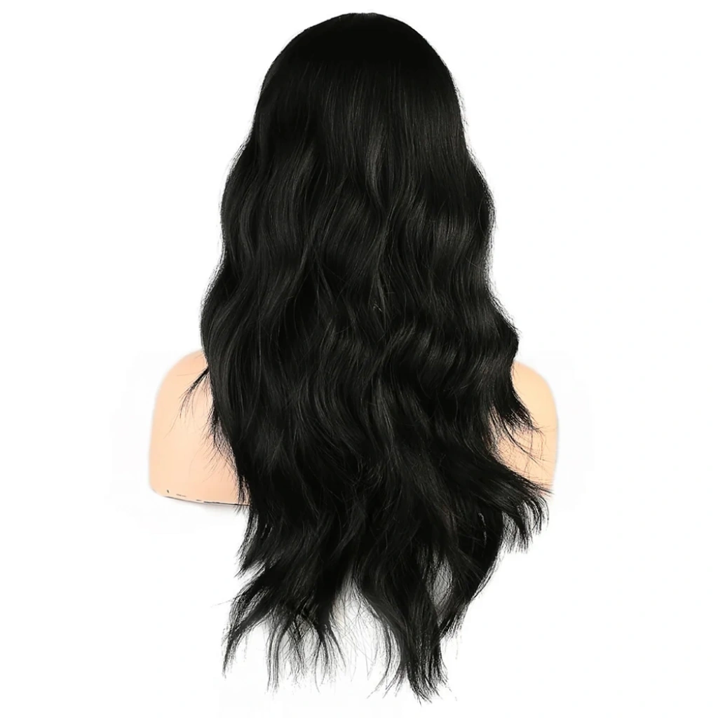 Koyu Siyah Su Dalgalı Fiber Sentetik Tül Peruk
