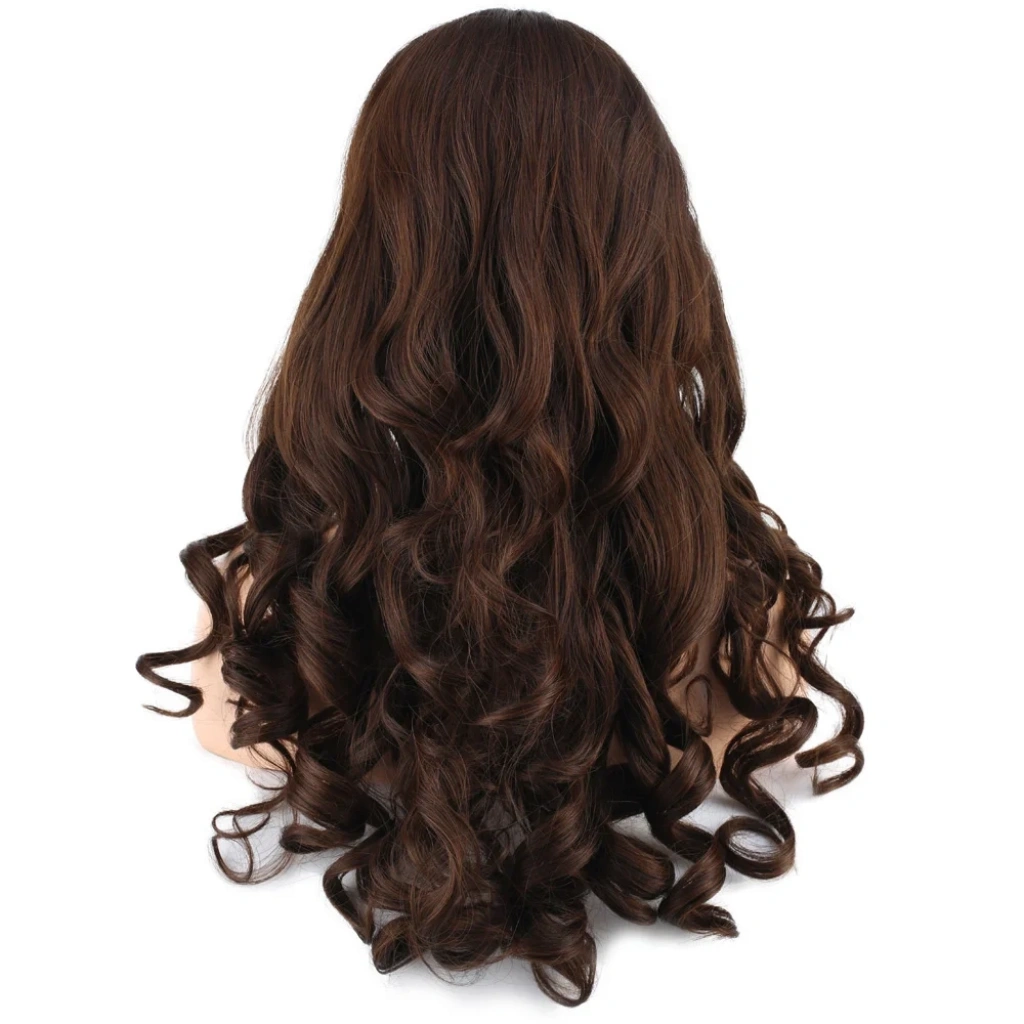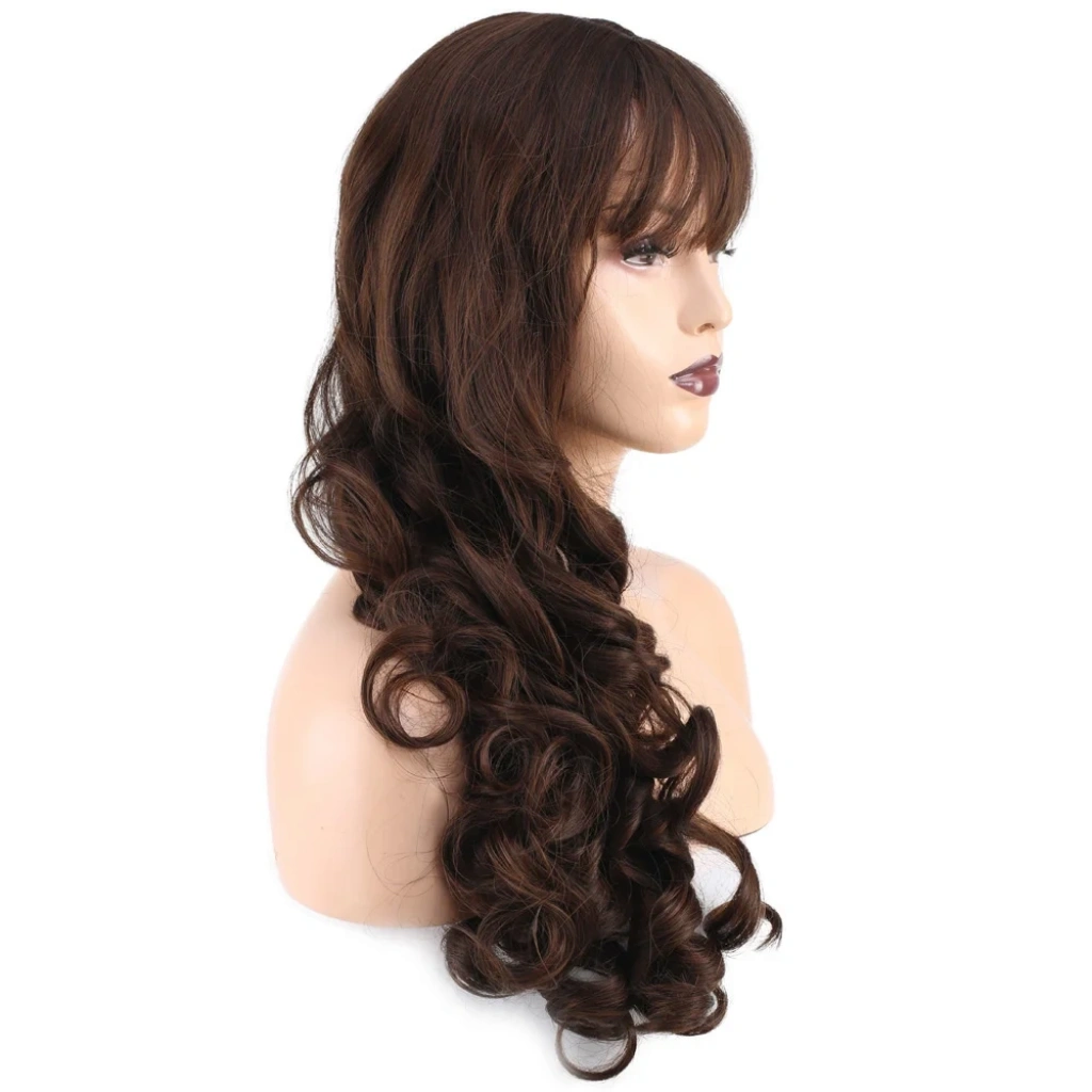 Dalgalı Perçemli Uzun Fiber Sentetik Peruk - Koyu Kahve
