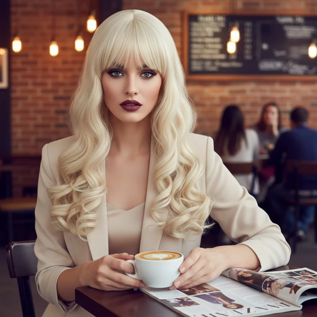 Dalgalı Perçemli Uzun Fiber Sentetik Peruk - Platin