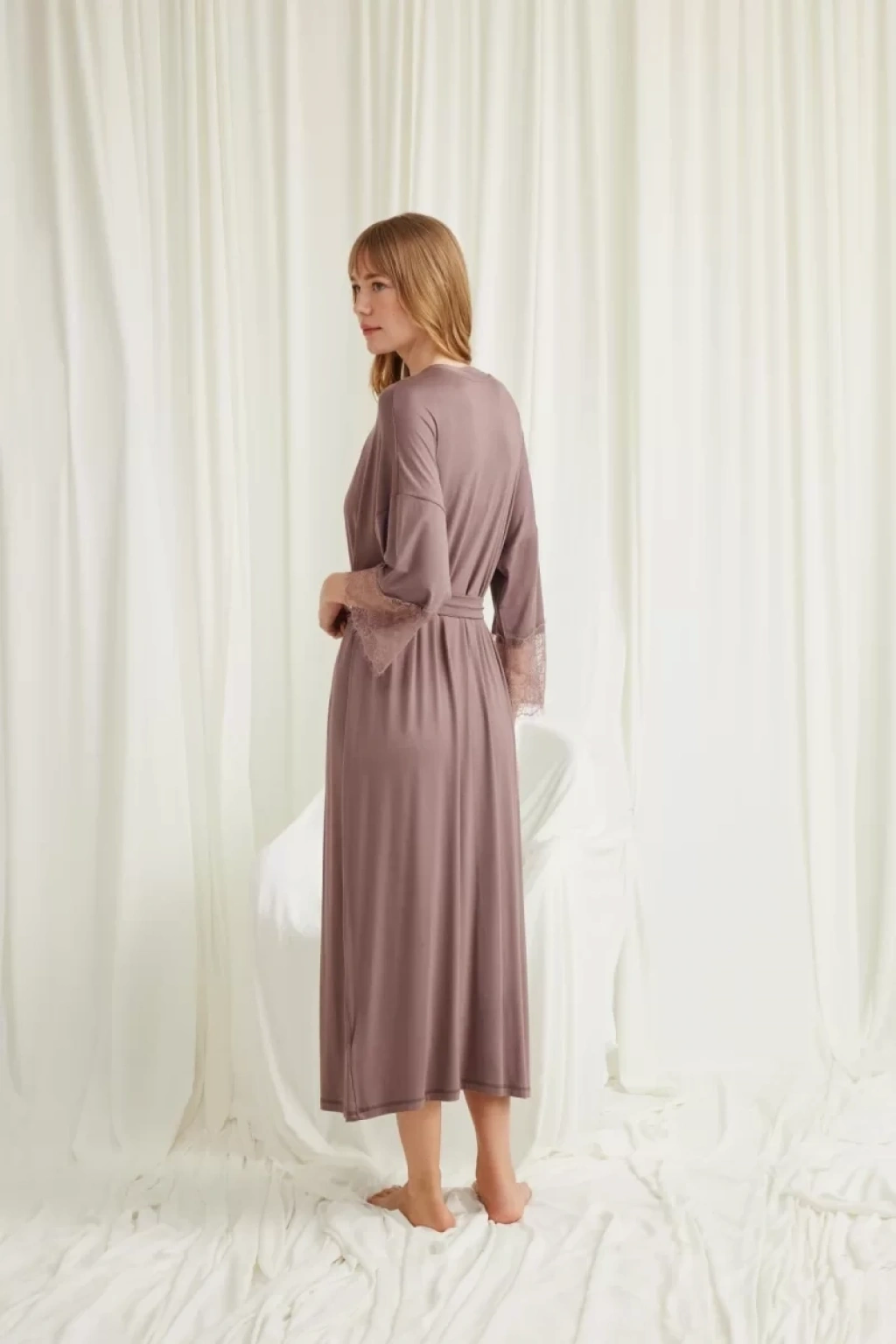 • Dekolteli Yakası Ve Kolu Dantelli Sabahlık Takımı
