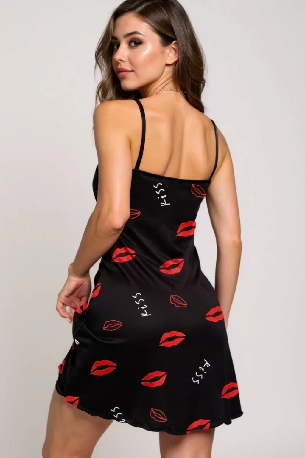 Öpücük Desenli Transparan Siyah Fantazi İç Giyim TM1385