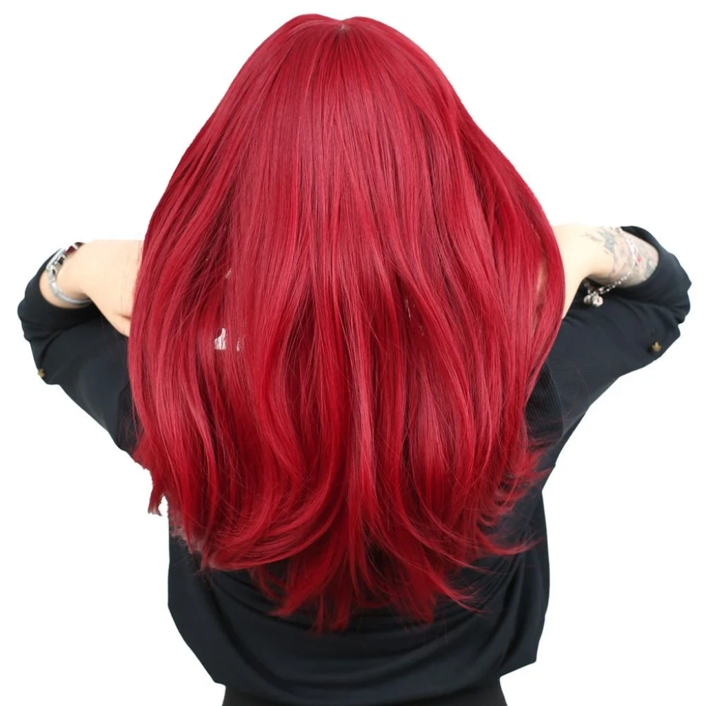 Düz Perçemli Orta Boy Fiber Sentetik Peruk - Kızıl