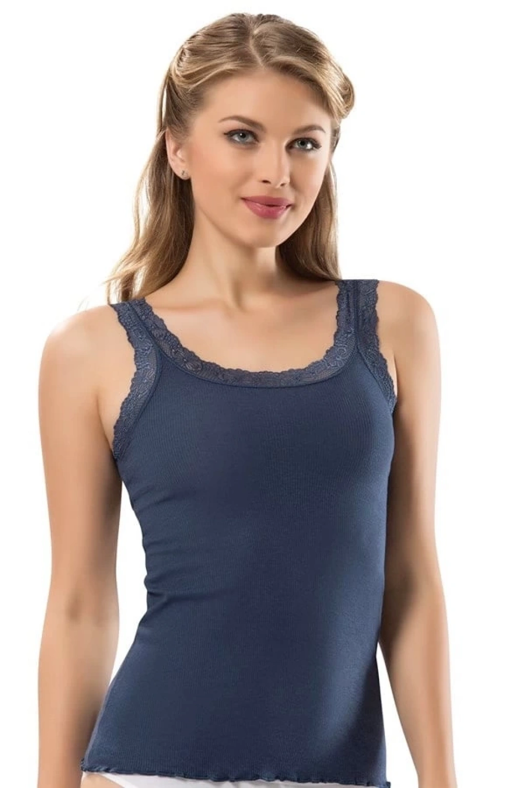 Pamuklu Ribana İşlemeli Geniş Askılı Atlet