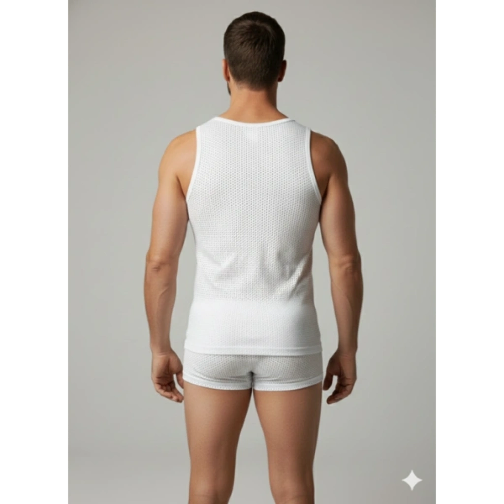 Erkek Beyaz File Tank Top Boxer Takımı