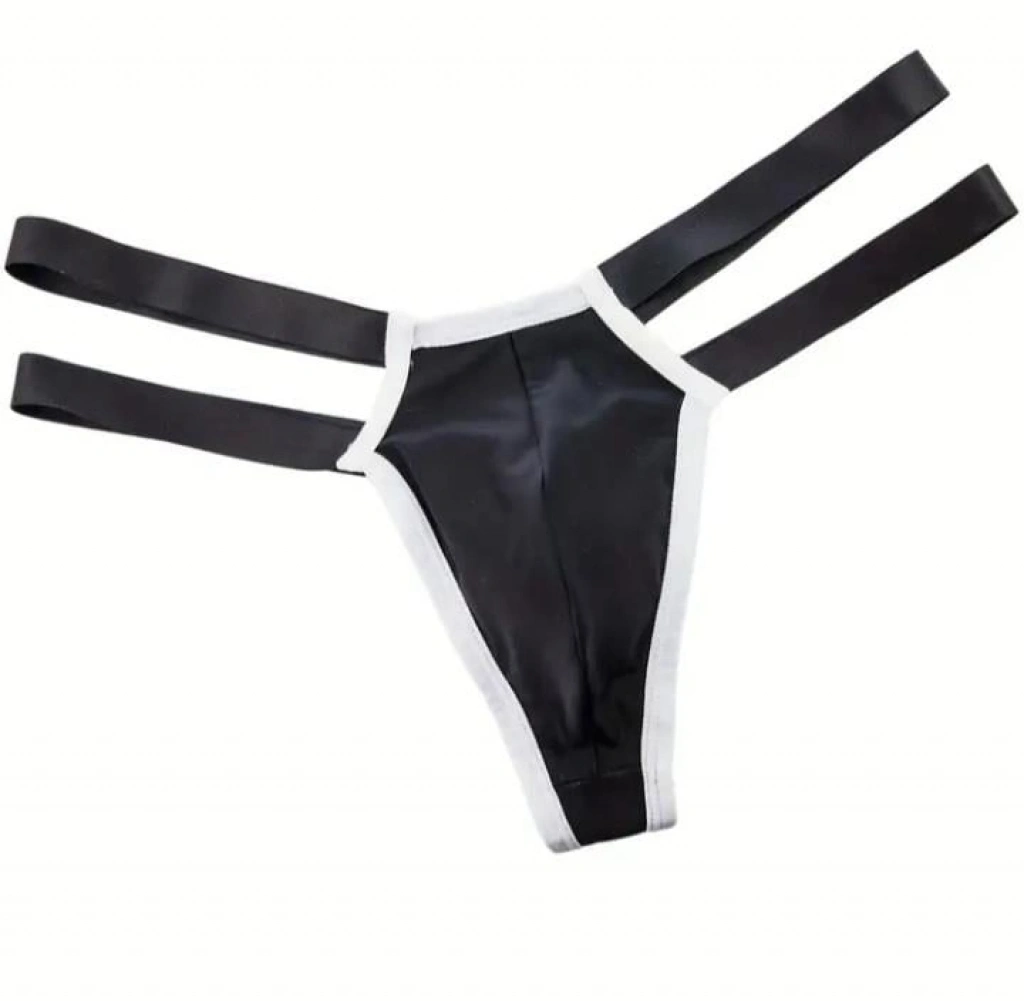 Fantezi Siyah Lame Seksi Erkek String - Tanga