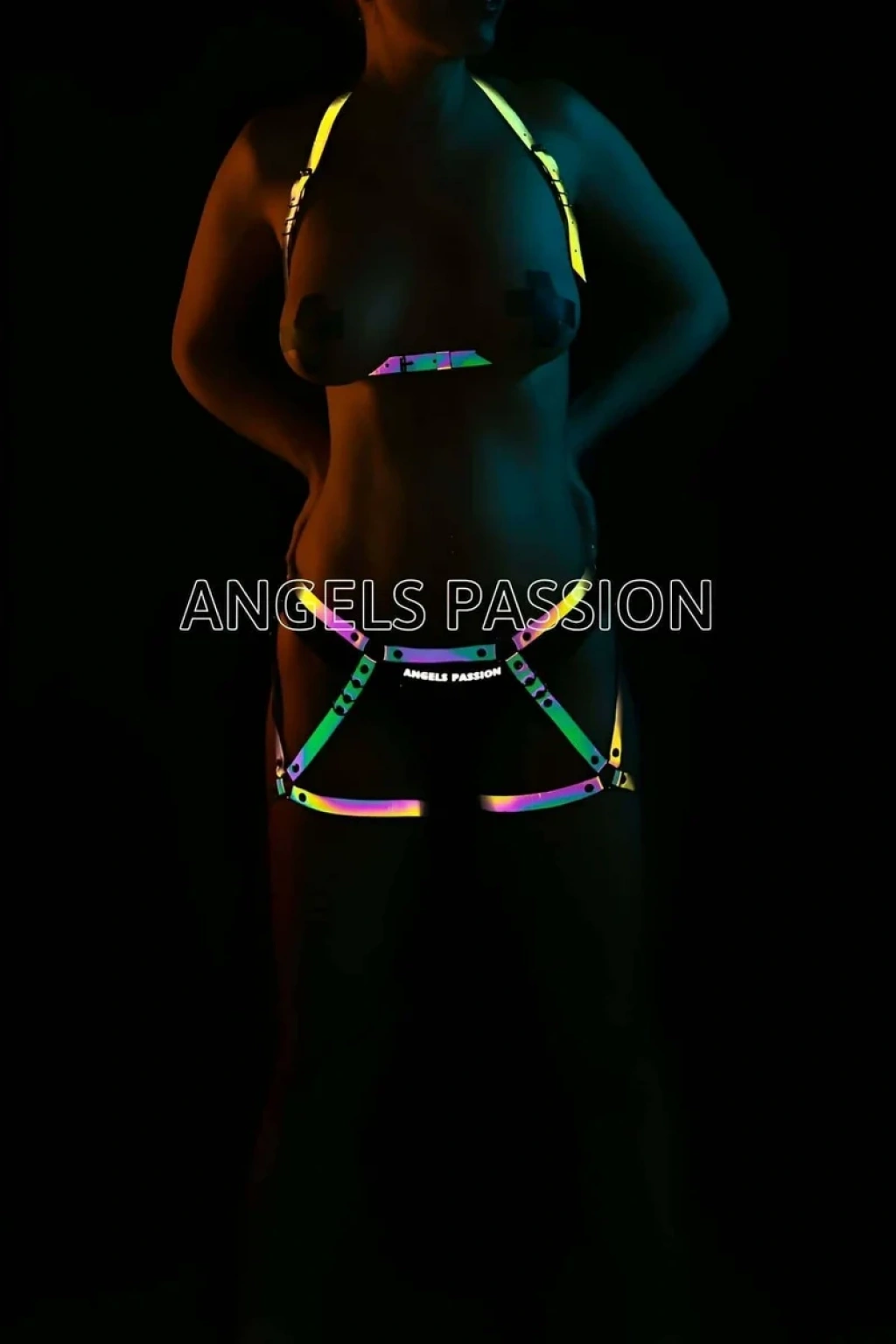 Dünya’da ilk kez Angels Passion markası tarafından üretilen Erotik Giyim Reflektörlü Harness Takım isimli Reflektörlü Harness ürünümüz, ışık vurduğunda parlayan özel üretim reflektörlü malzemeden hazırlanmıştır.