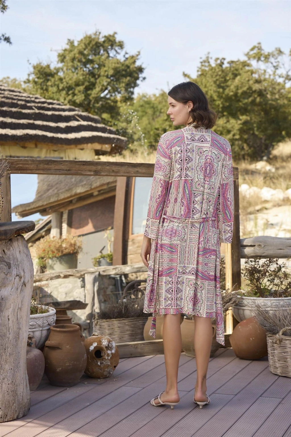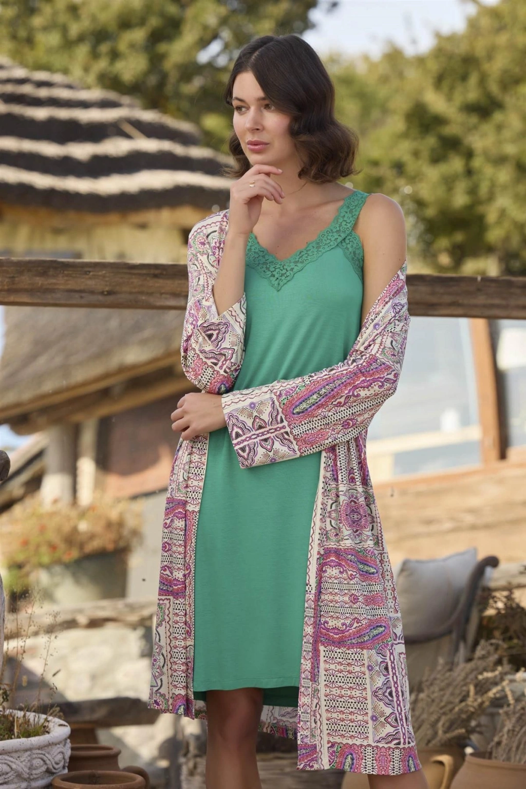 Etnik Deseni Ve Dantelli Sabahlık Takımı
