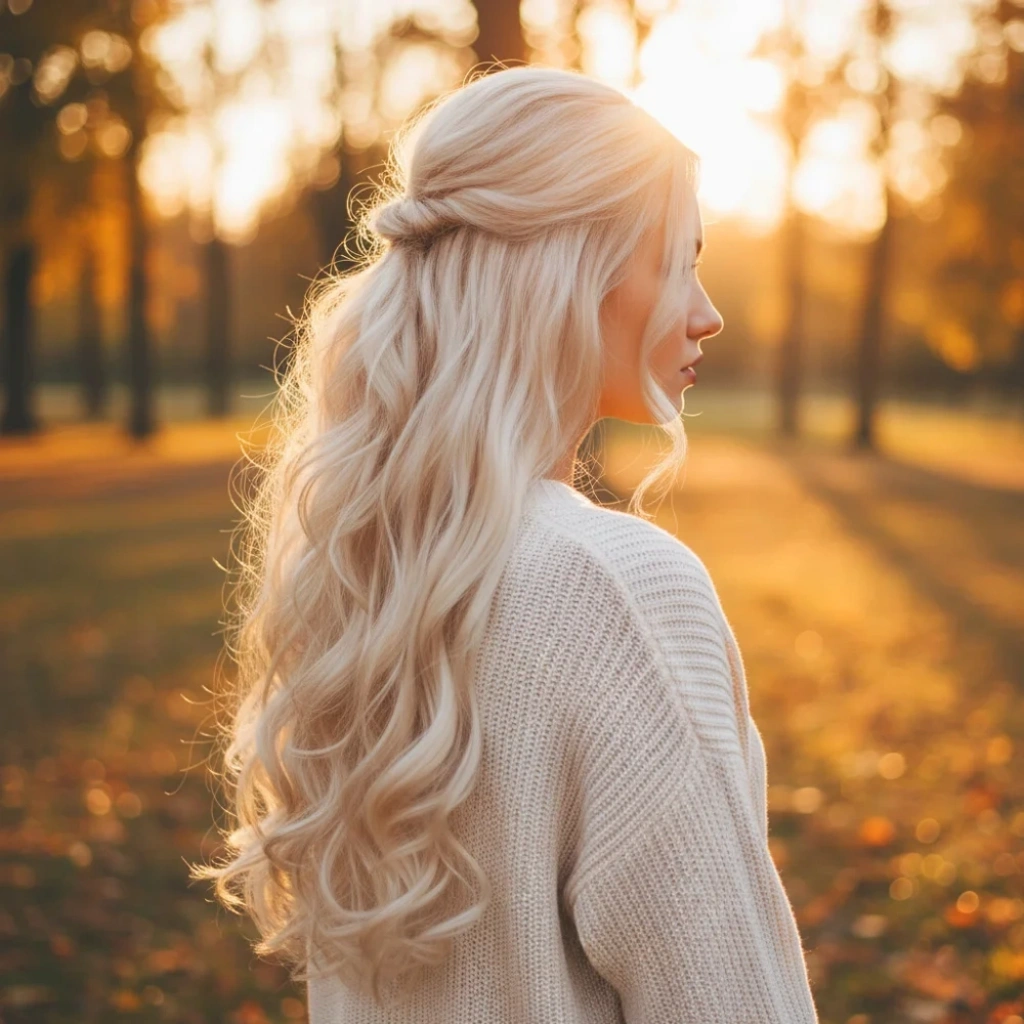 Rus Kumralı Beyaz Platin Işıltılı ve Ombreli Tül Peruk