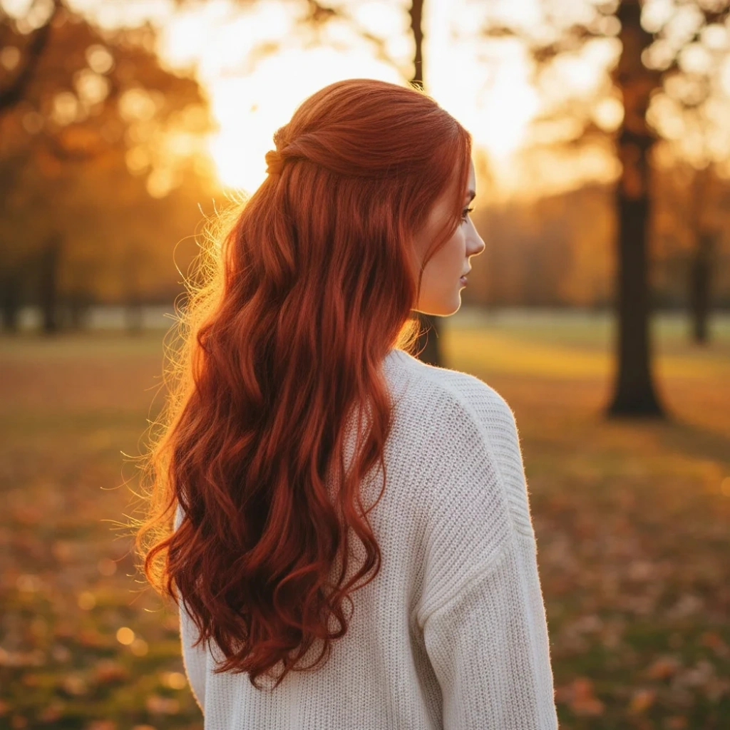 Koyu Bakır Su Dalgalı Tül Peruk