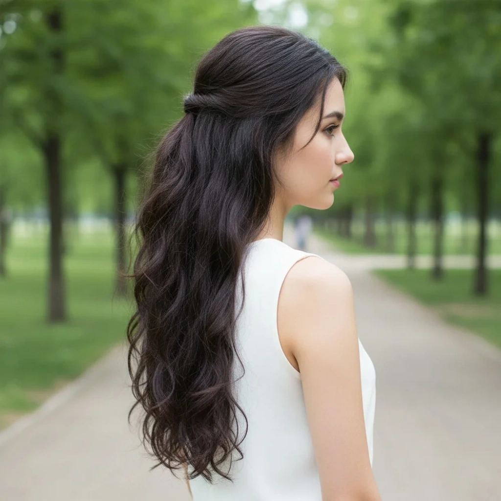 Koyu Siyah Su Dalgalı Fiber Sentetik Tül Peruk