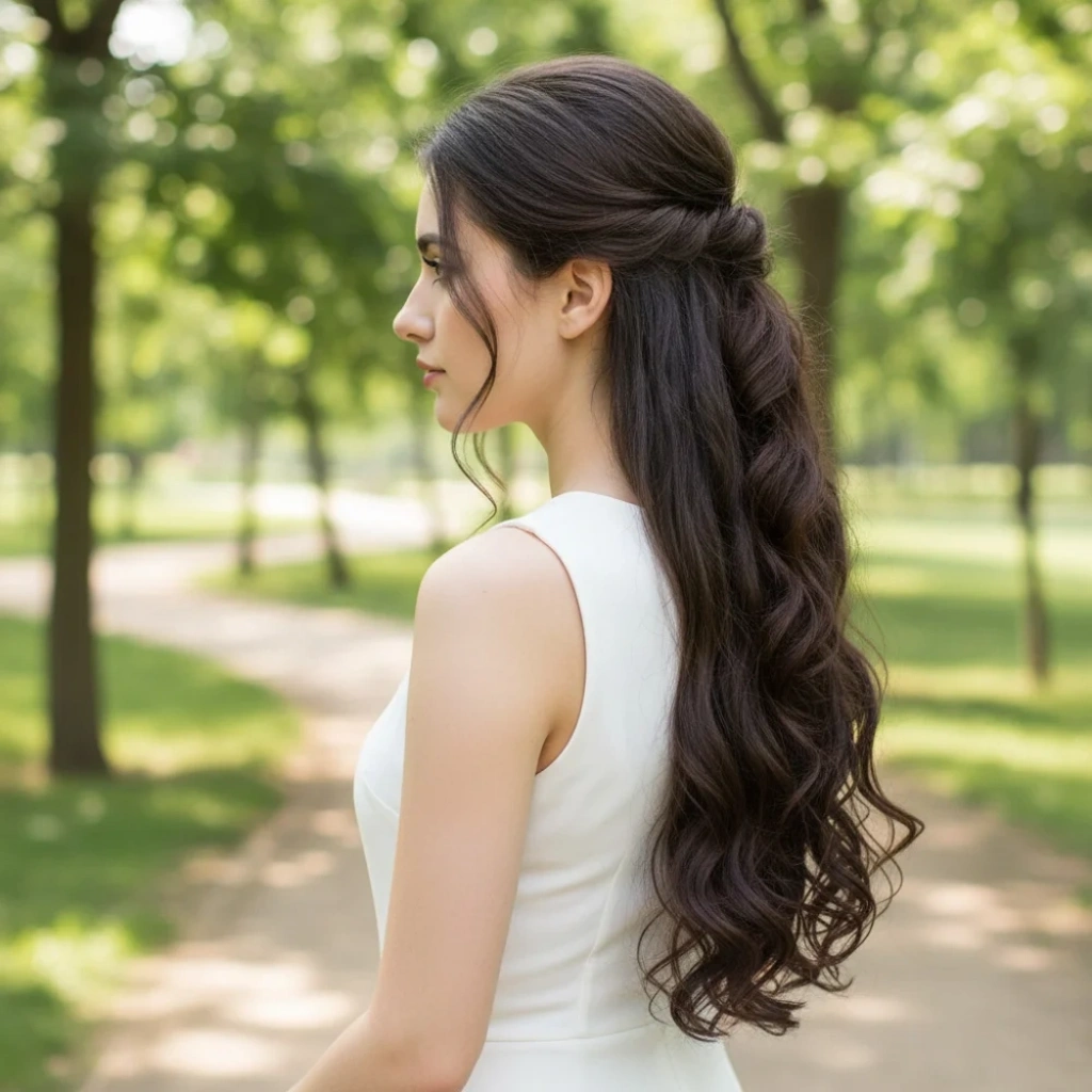 Koyu Siyah Su Dalgalı Fiber Sentetik Tül Peruk