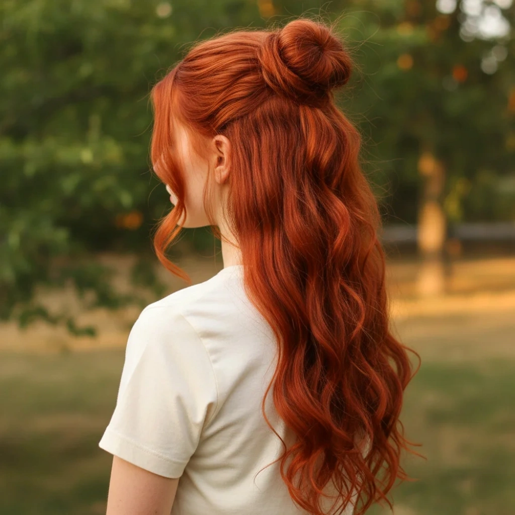 Koyu Bakır Su Dalgalı Tül Peruk