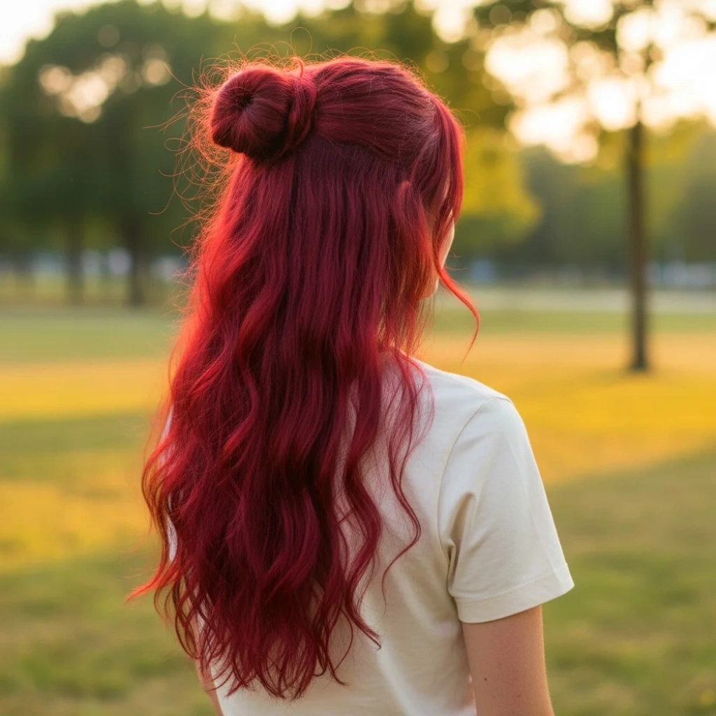 Fiber Sentetik Dalgalı Yarım Ay + 2 Yan Çıt Çıt - Kızıl