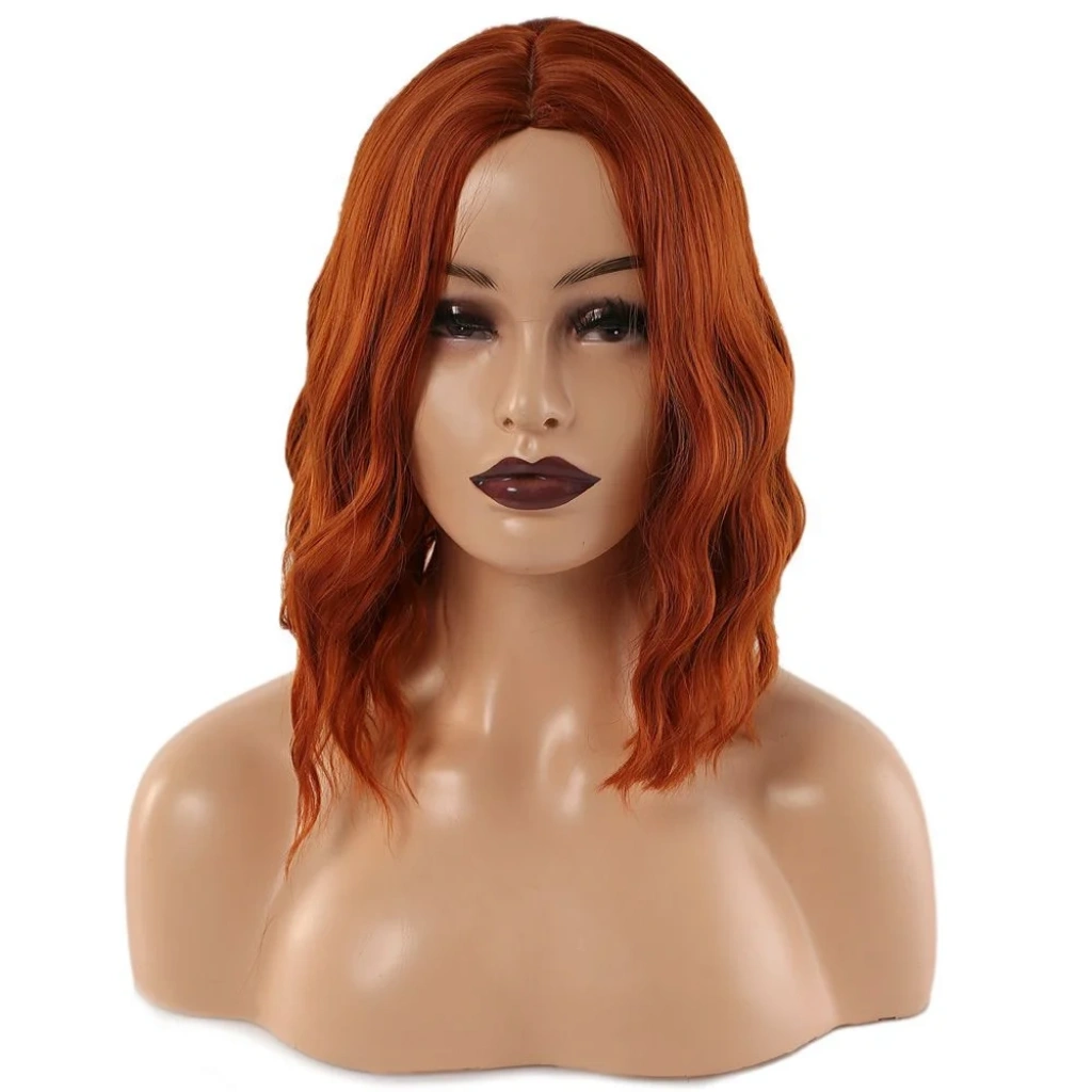 Fiber Sentetik Kısa Dalgalı Perçemsiz Peruk - Bakır