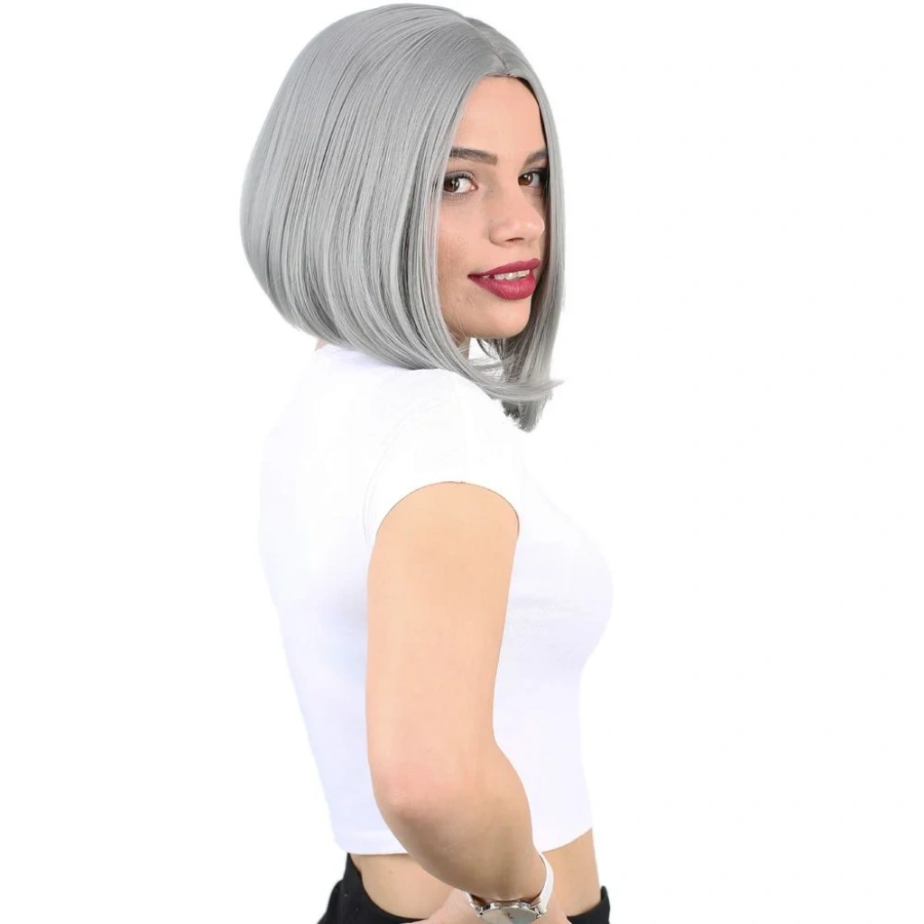 Fiber Sentetik Peruk Perçemsiz Kısa Düz - Gri