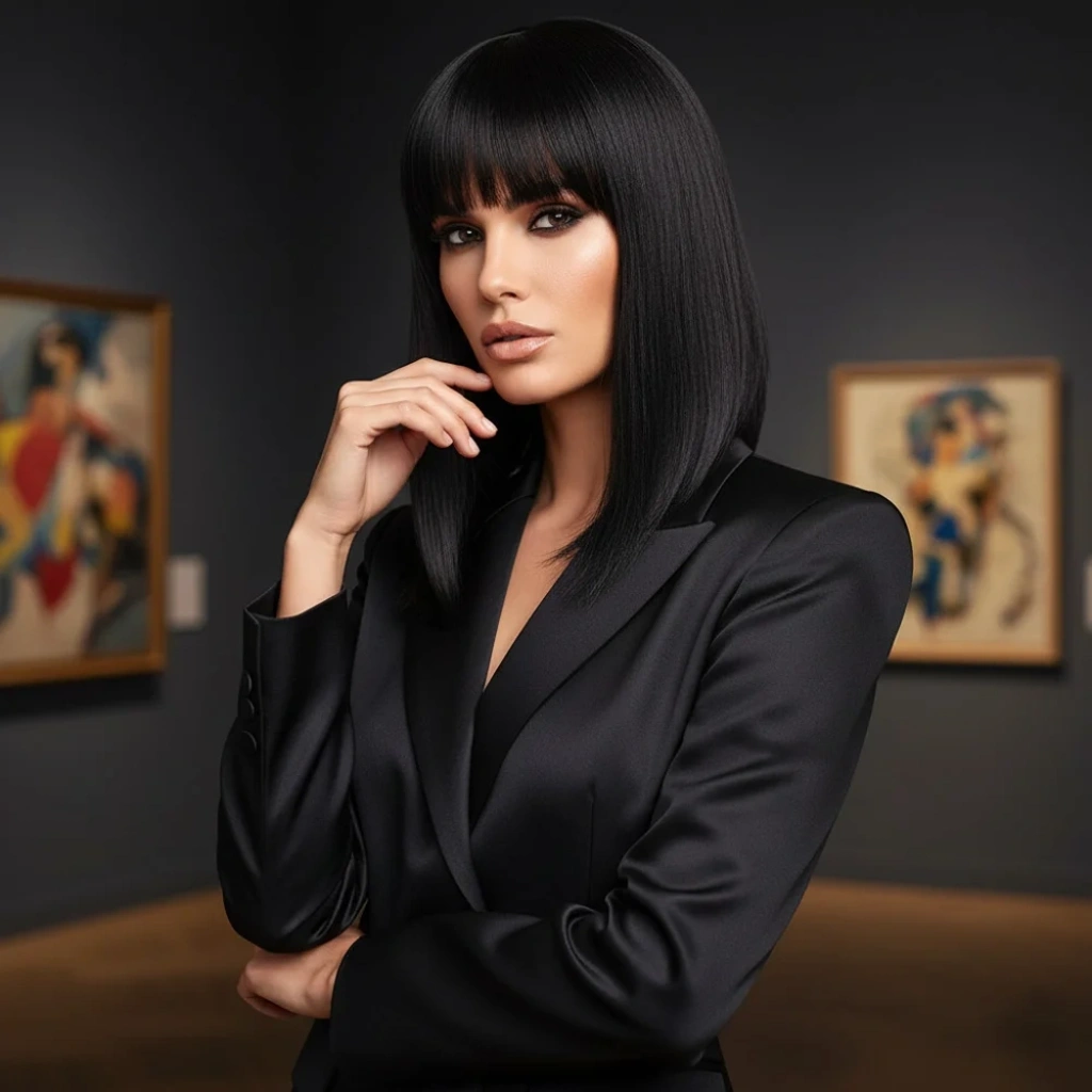 Koyu Siyah Su Dalgalı Fiber Sentetik Tül Peruk