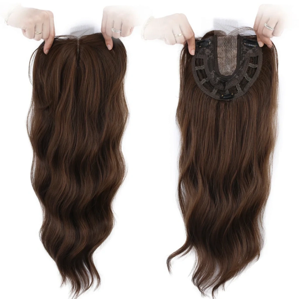 Kumral Platin Ombre ve Röfleli Fiber Sentetik Geniş Dalgalı Tül Peruk