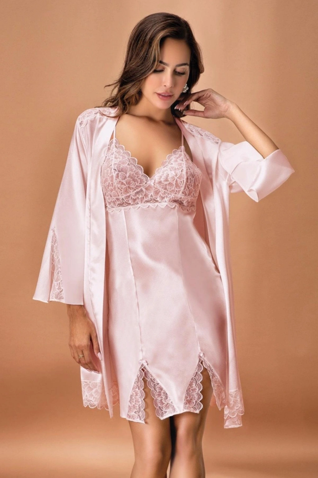Gül Kurusu Saten Bride Sabahlık Zarif Kadın Ev Giyim