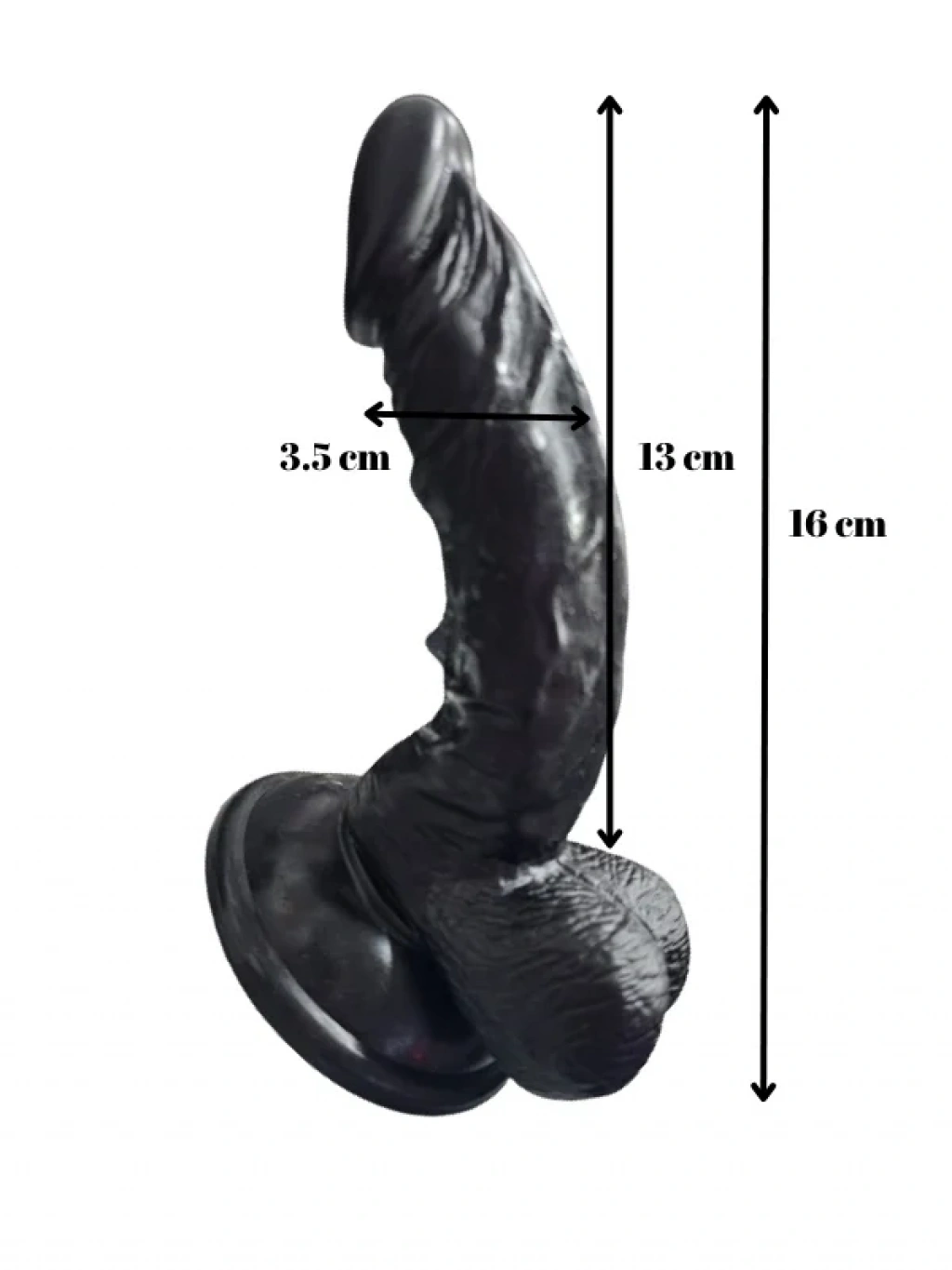 Gerçekçi Testisli Siyah Dildo 16 cm
