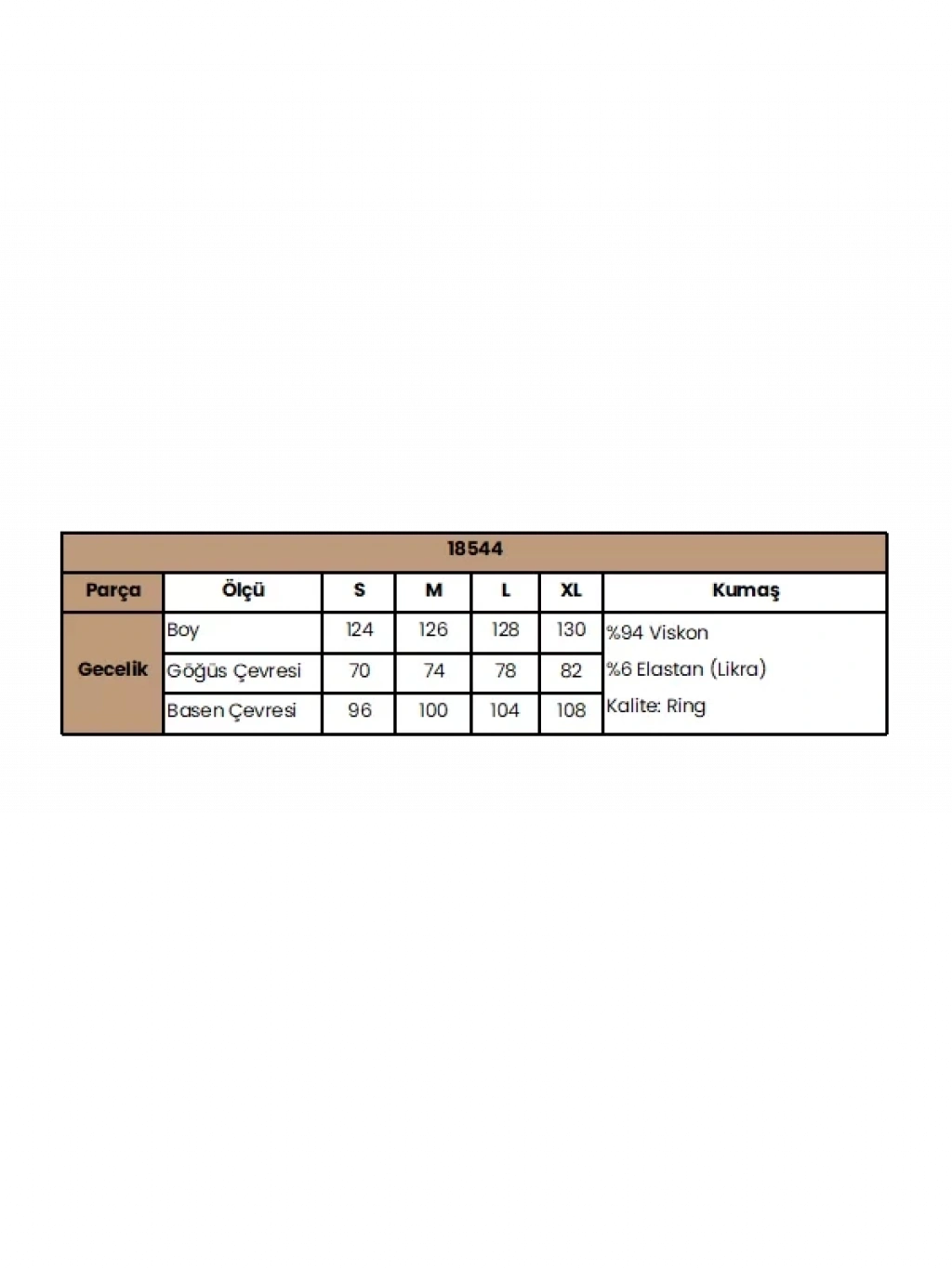 Gecelik: Yeşil renklidir, derin V yakalıdır, göğüs ve sırt dekoltelidir, yakası, göğsü ve göğüs altı dantellidir, ayarlanabilir lastik askılıdır, yırtmaç detaylıdır, örme kumaştır.