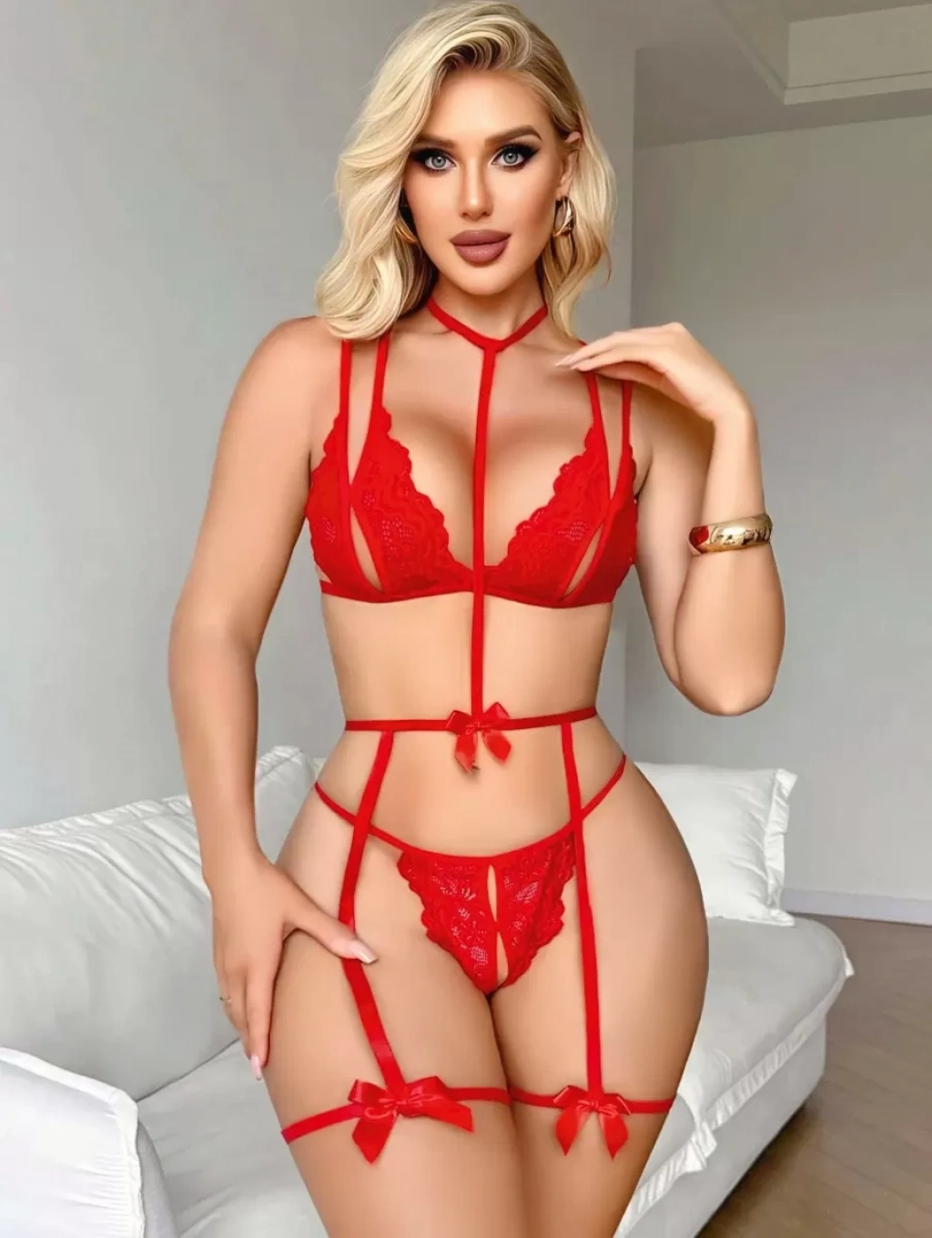 Dikkat çekici kırmızı rengi ve modern tasarımıyla öne çıkan bu jartiyer takım, şıklığı ve zarafeti bir arada sunar. Özel kesim detayları sayesinde vücut hatlarını estetik şekilde ön plana çıkarır ve etkileyici bir görünüm oluşturur.