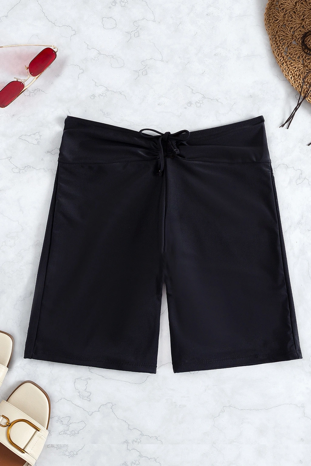 Kadın Siyah Önden Bağcıklı Deniz Şortu