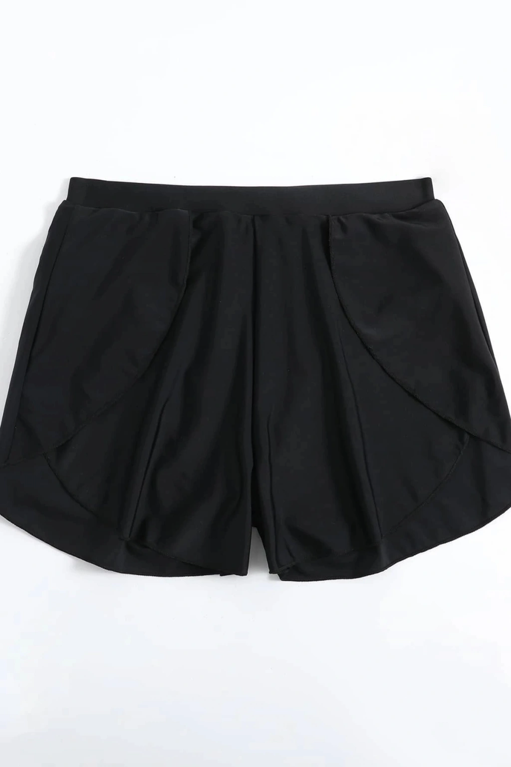 Kadın Siyah Yırtmaçlı Etek Görünümlü Şık Deniz Şortu