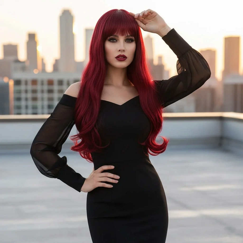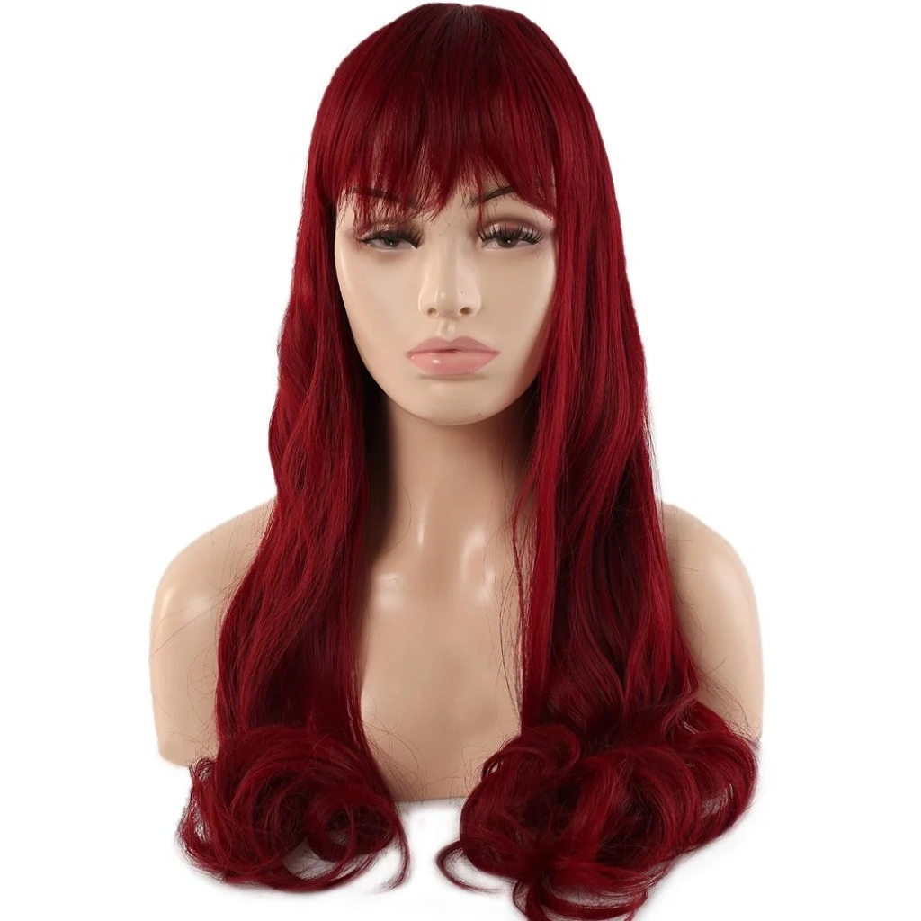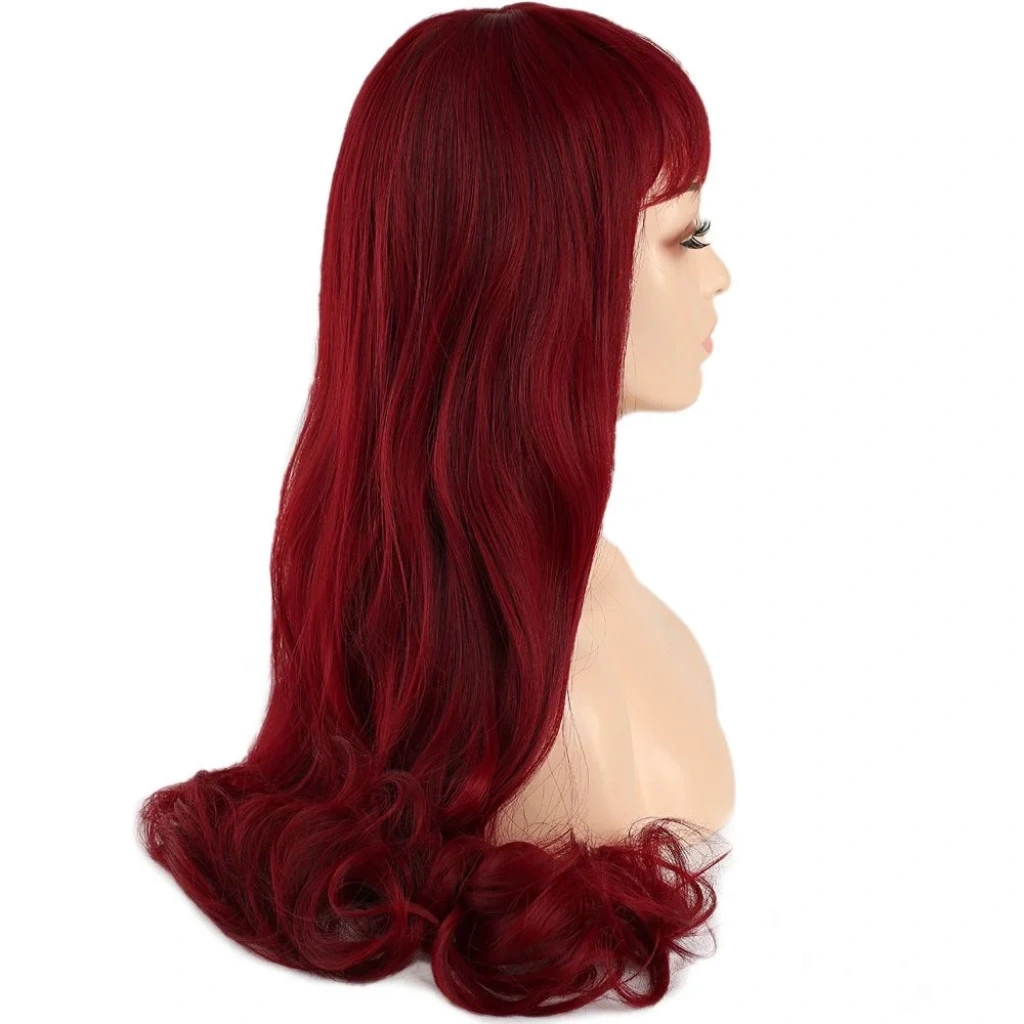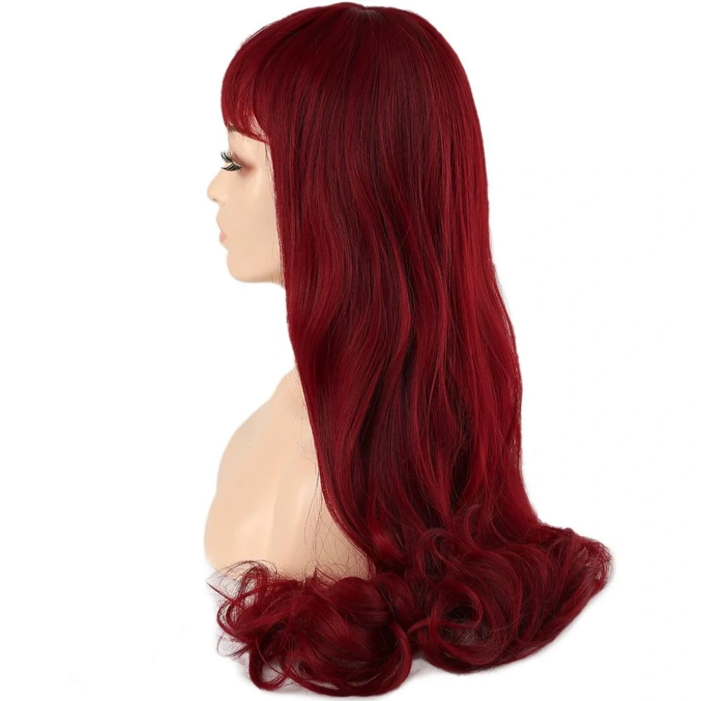 Kahküllü Uzun Dalgalı Fiber Sentetik Peruk - Kızıl