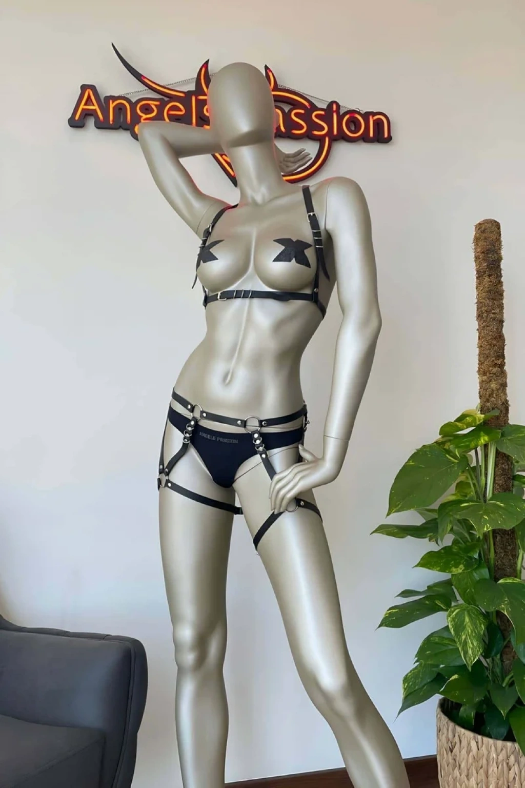 Şık Deri Seksi Külot Harness - APFT1029