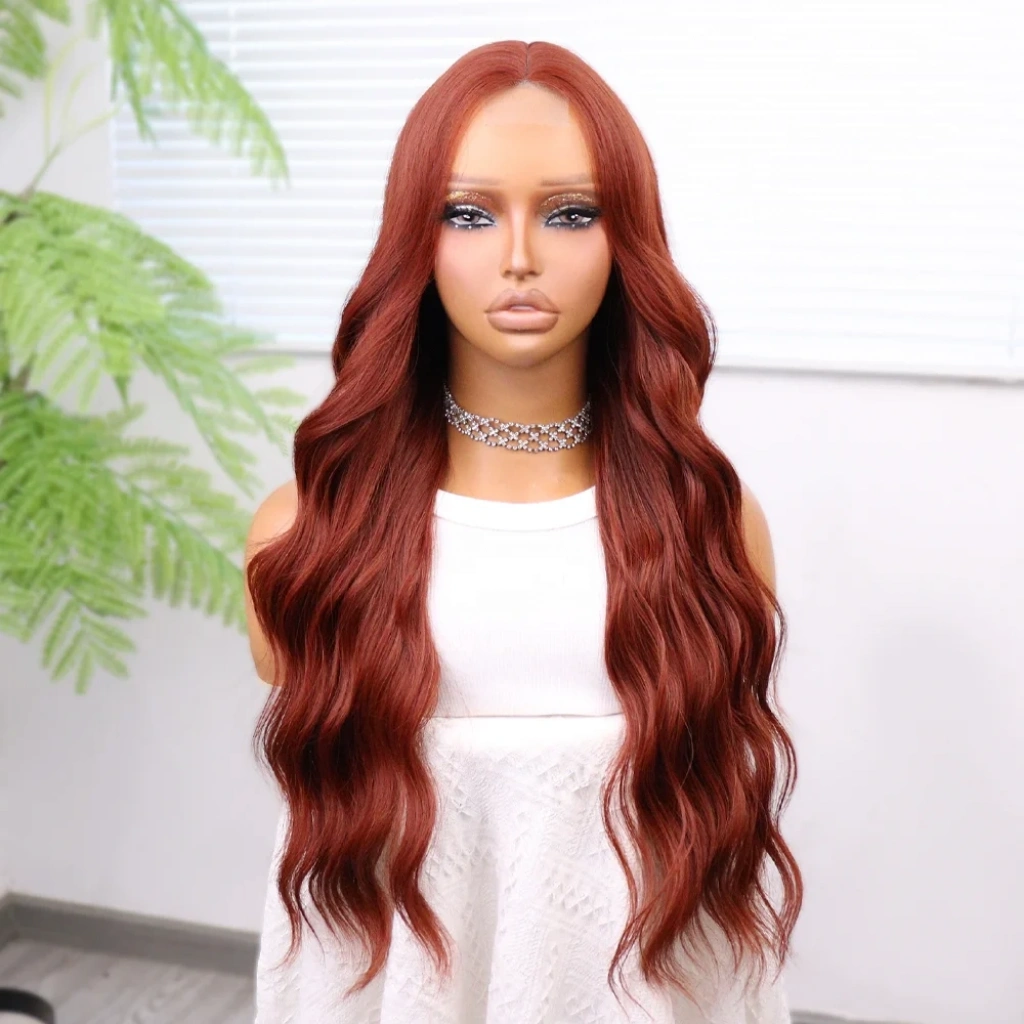Koyu Bakır Su Dalgalı Tül Peruk