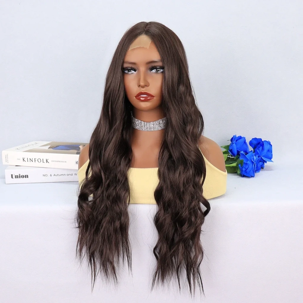 Koyu Kumral Dalgalı Uzun Tül Peruk