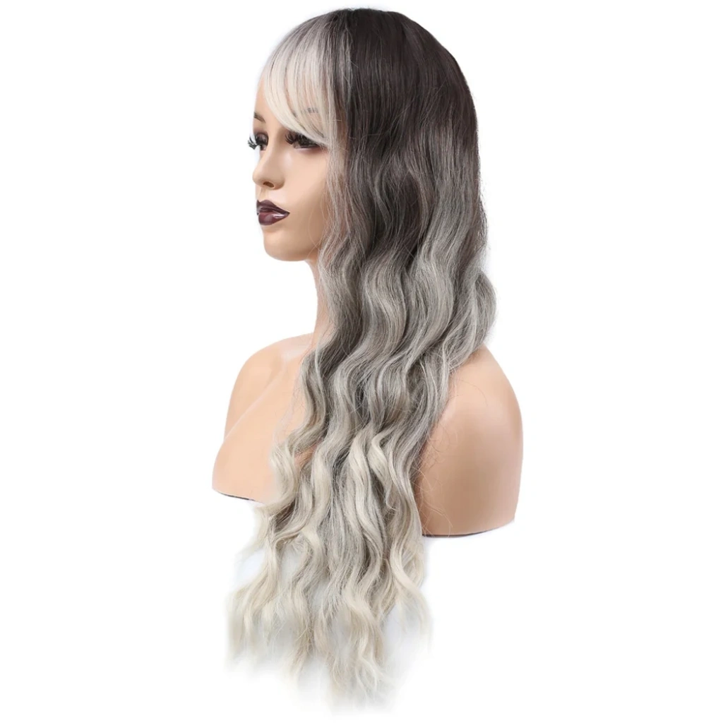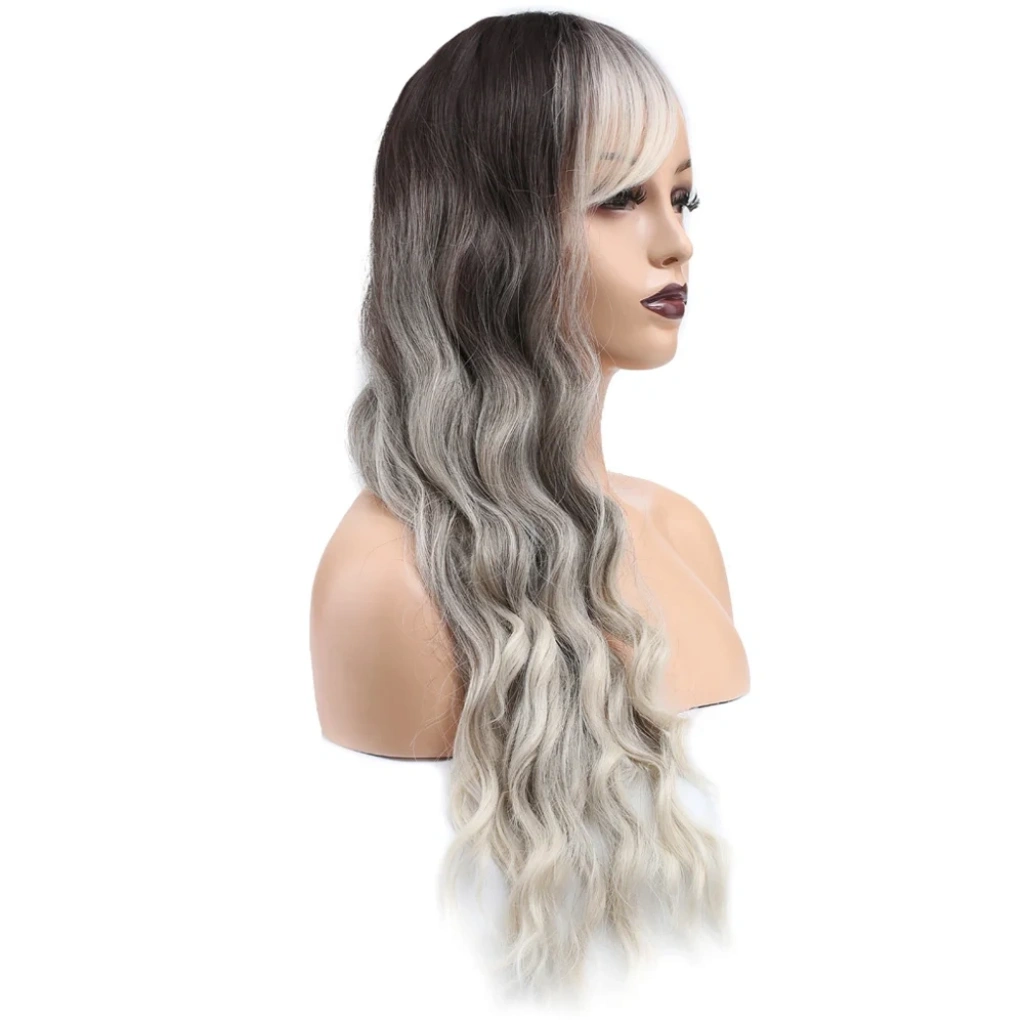 Perçemli Uzun Su Dalgası Fiber Sentetik Peruk- Ombre ve Röfleli