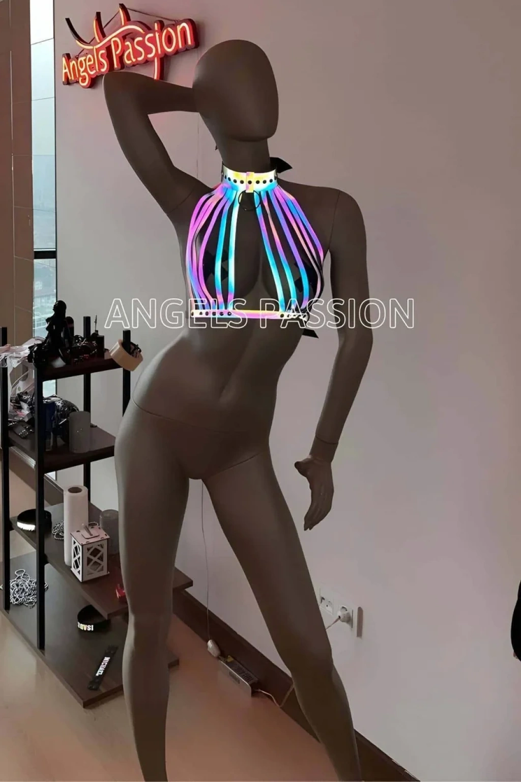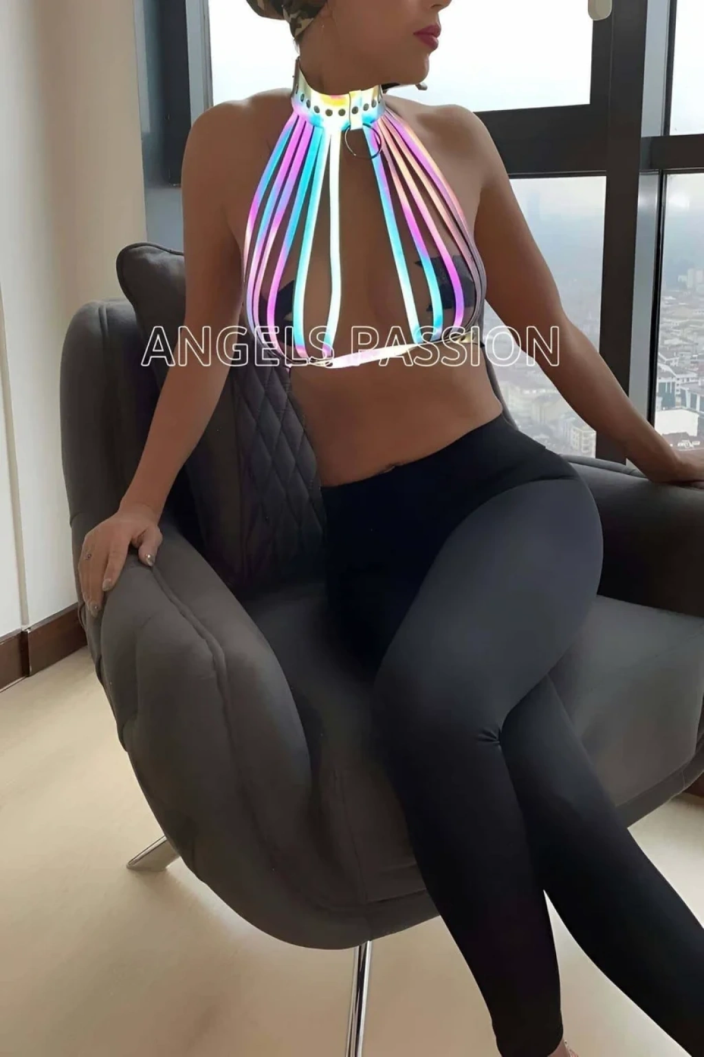 Dünya’da ilk kez Angels Passion markası tarafından üretilen Erotik İç Giyim Reflektörlü Seksi Body Harness isimli Reflektörlü Harness ürünümüz, ışık vurduğunda parlayan özel üretim reflektörlü malzemeden hazırlanmıştır.