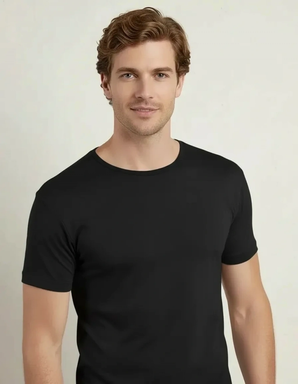 Erkek Pamuklu Kısa Kol Dar Yaka Klasik Fanila T-shirt
