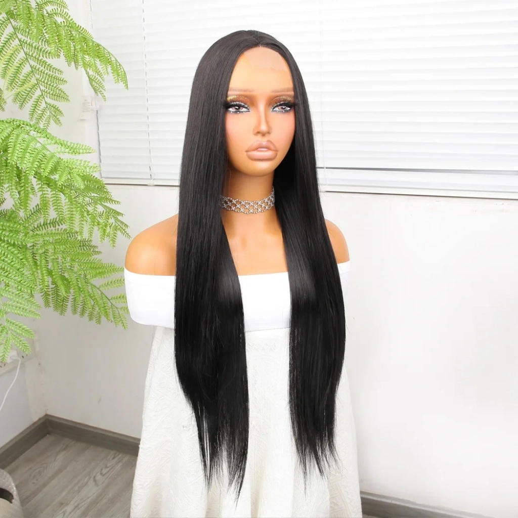 Koyu Siyah Su Dalgalı Fiber Sentetik Tül Peruk