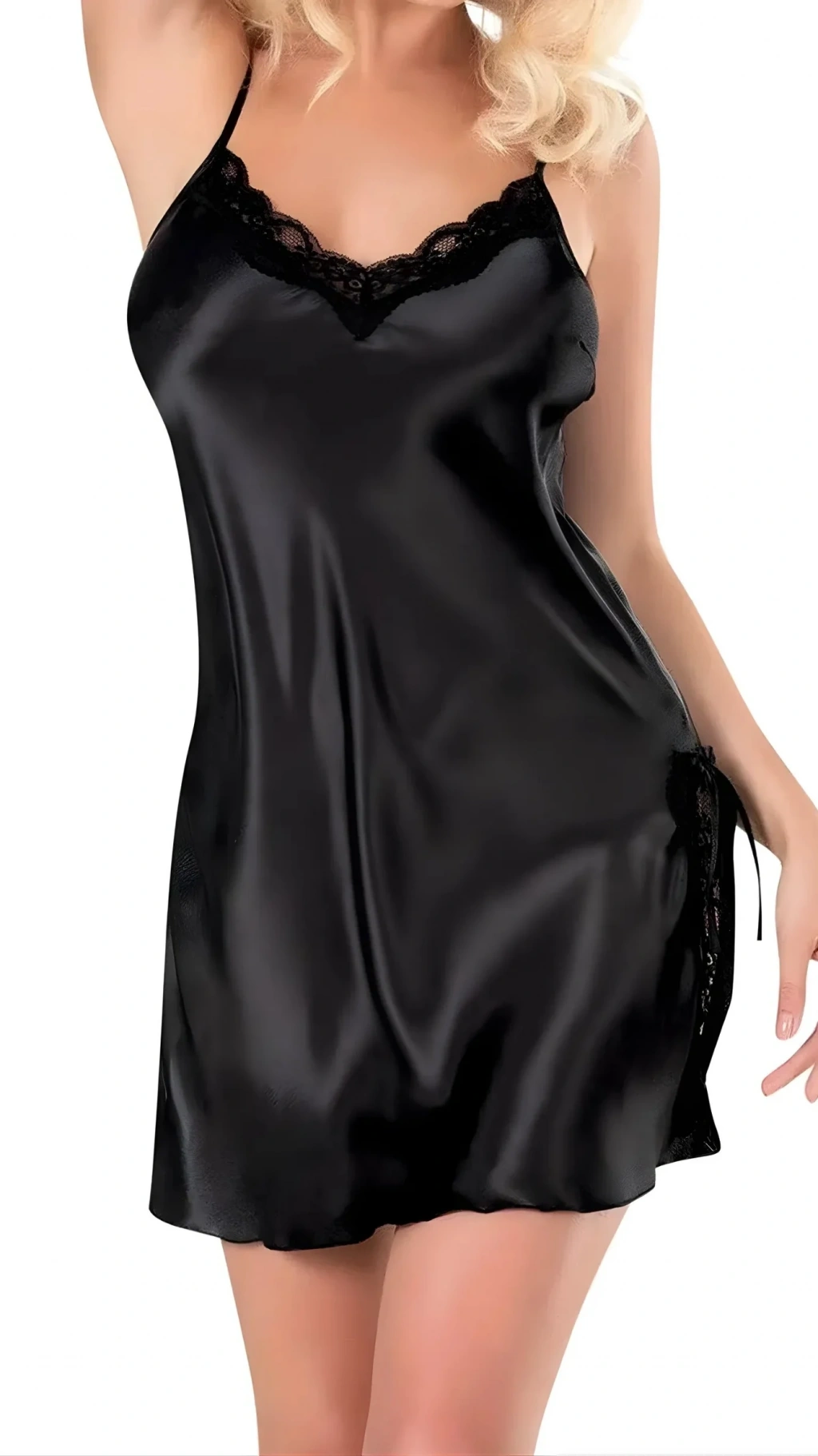 Siyah Kısa Saten Gecelik 8119