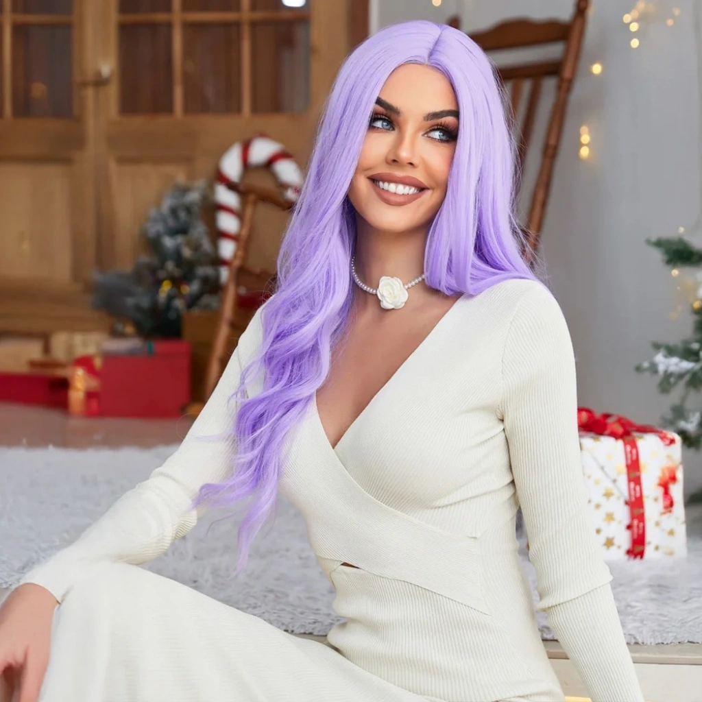 Su Dalgalı Açık Mor Tül Peruk