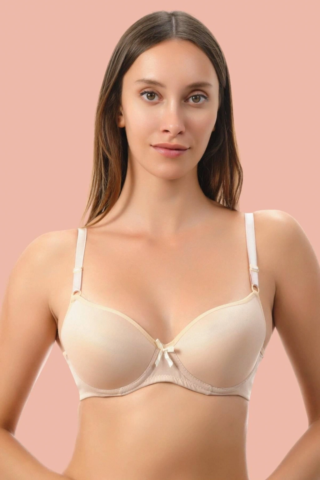 Kırmızı-ten 2'li Mikro Kumaş İçi Boş Balenli Günlük Desteksiz Sütyen