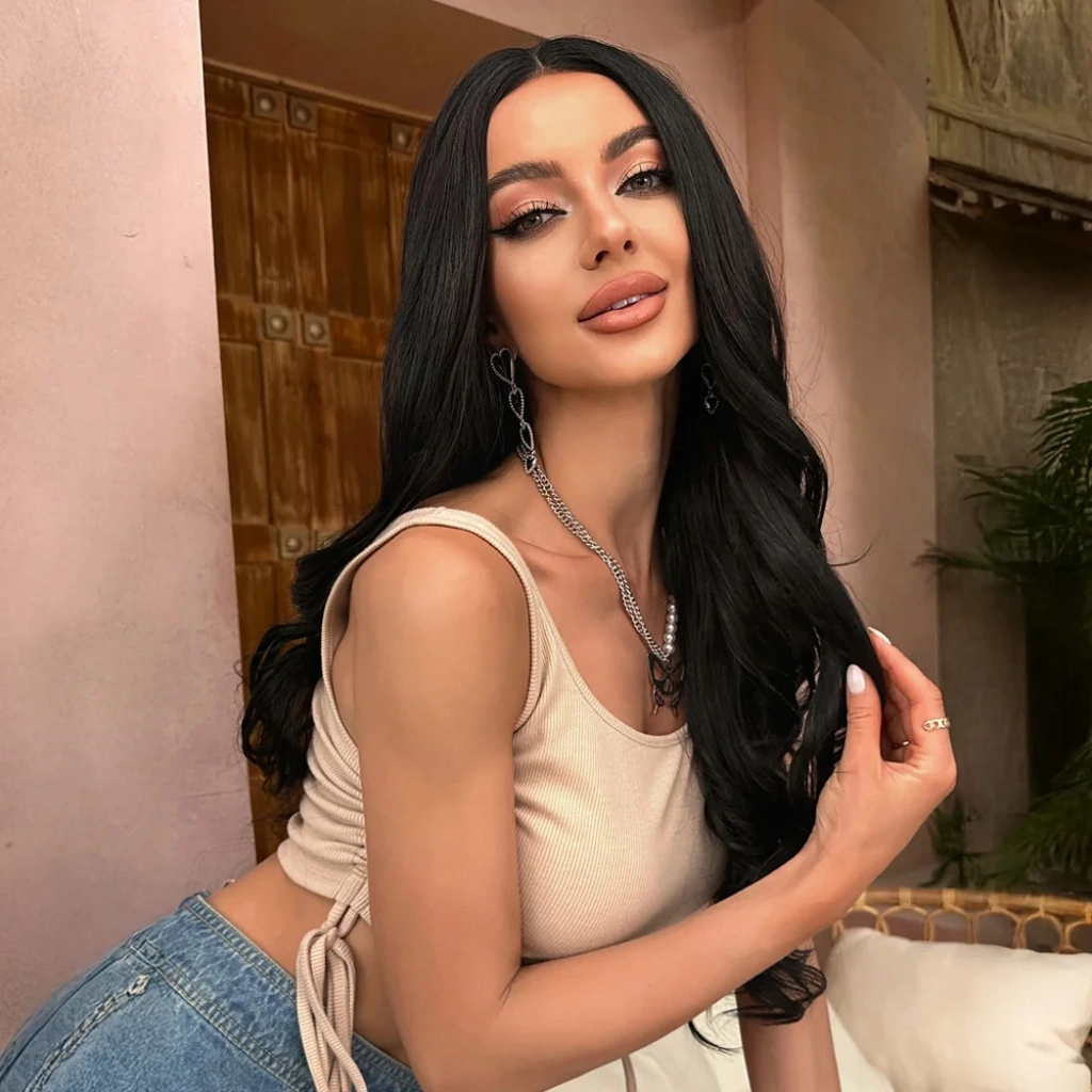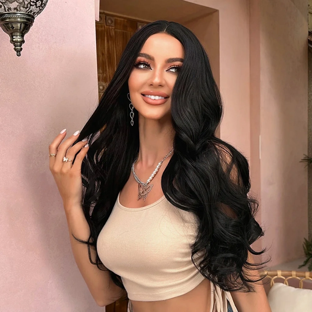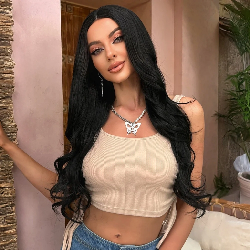 Koyu Siyah Su Dalgalı Fiber Sentetik Tül Peruk