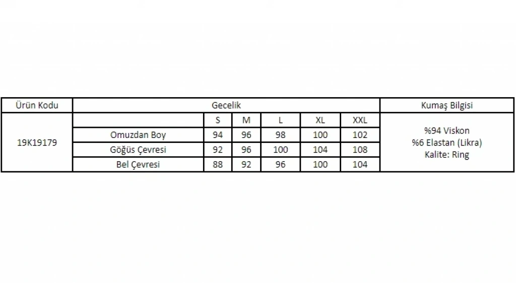 Gecelik: Vizon renklidir, bisiklet yakalıdır, yakası damla detaylıdır, kısa kolludur, yırtmaçlıdır kolu ve yırtmacı brode dantellidir, örme kumaştır.
